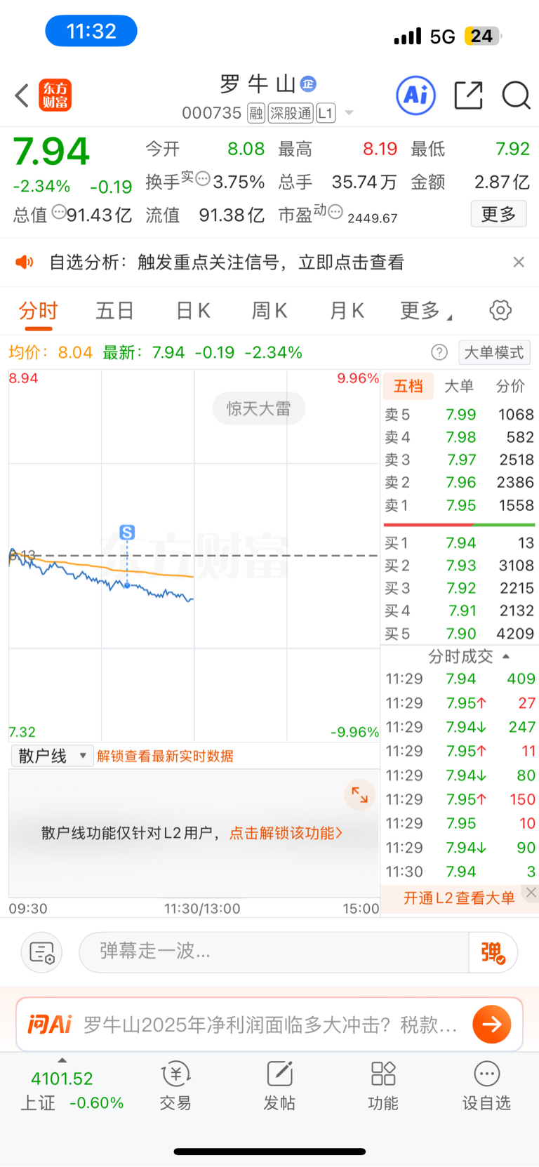 $罗 牛 山(SZ000735)$ 扛不住了,拜拜