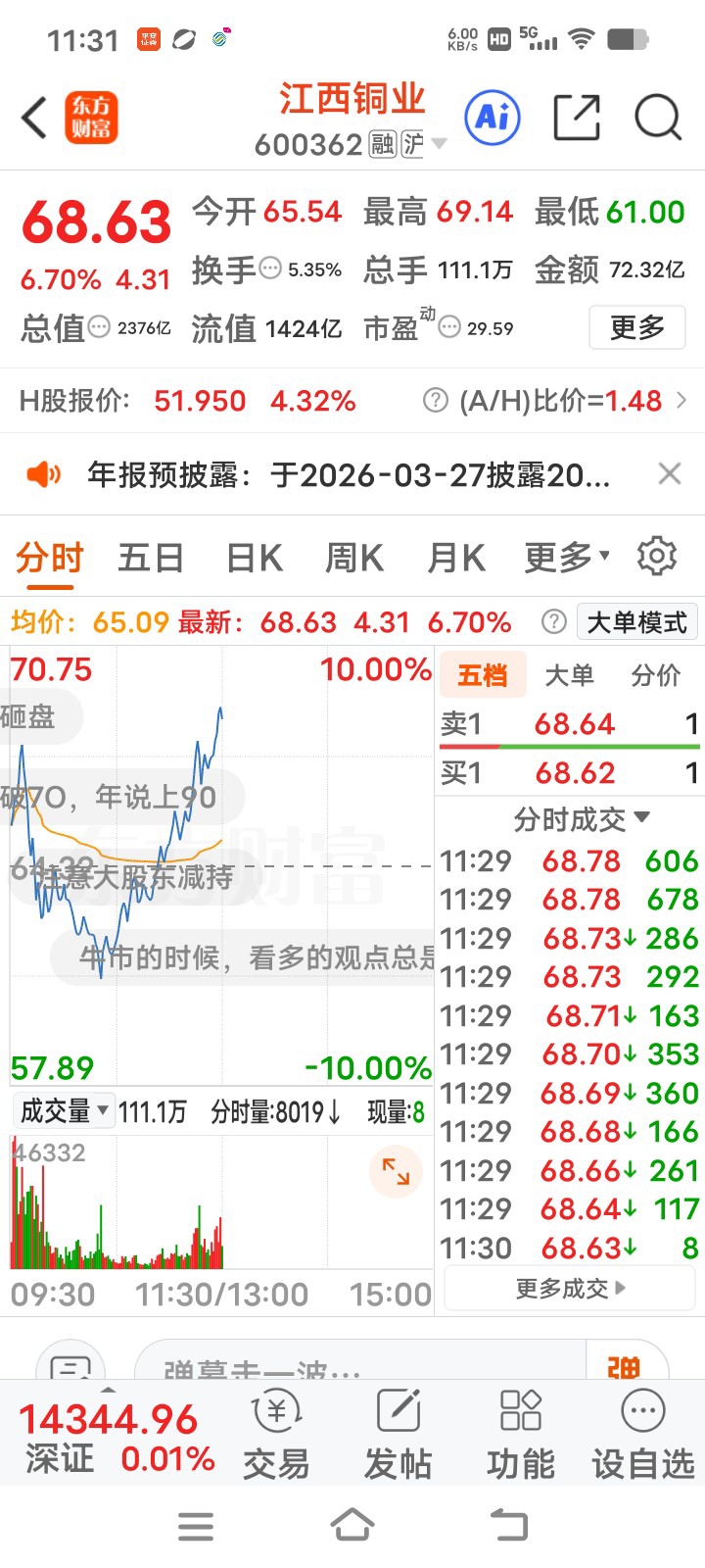 $罗 牛 山(SZ000735)$ 还是这个涨得快,前几天发这里才60块
