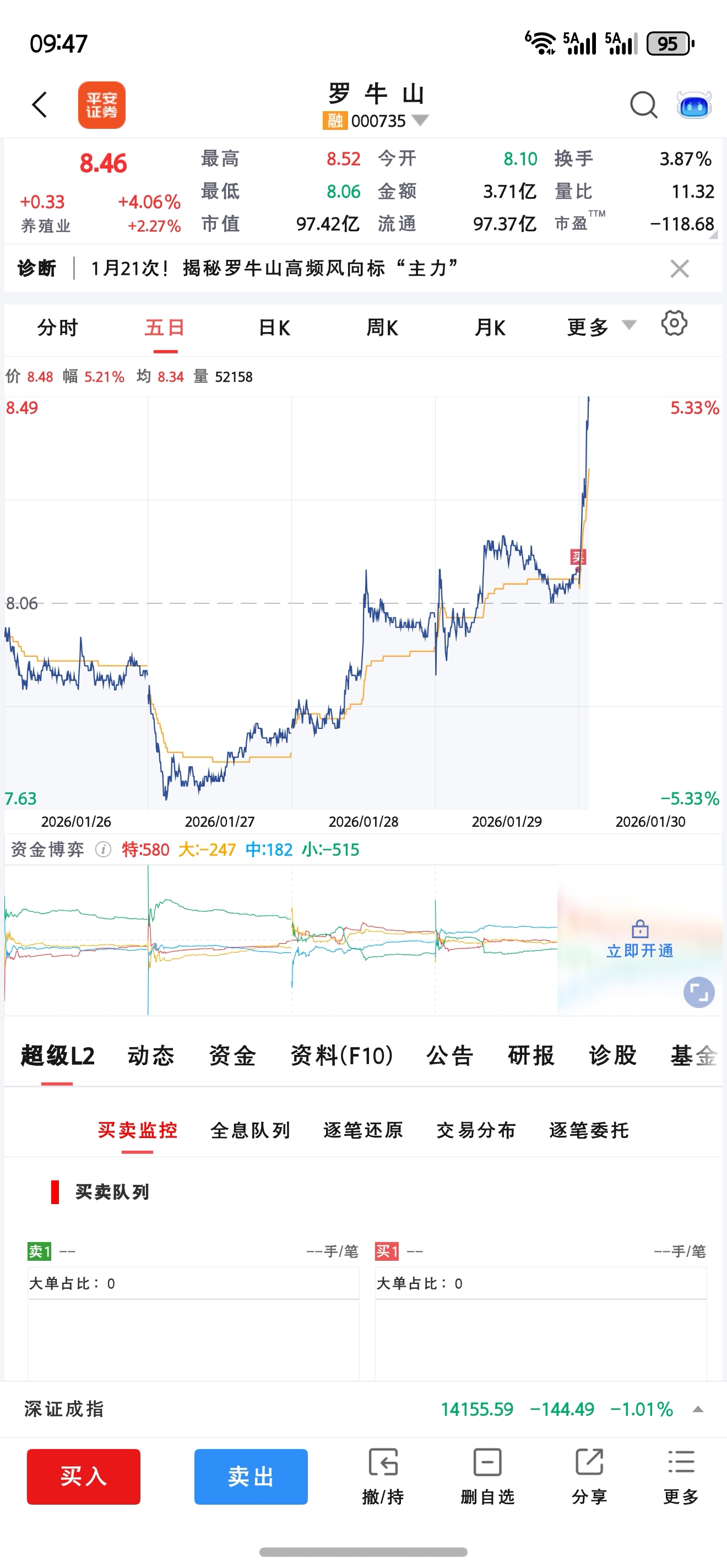 $罗 牛 山(SZ000735)$ 昨天收盘竞价随便买了点玩,你今天给我弄这个???早说啊。我多买点