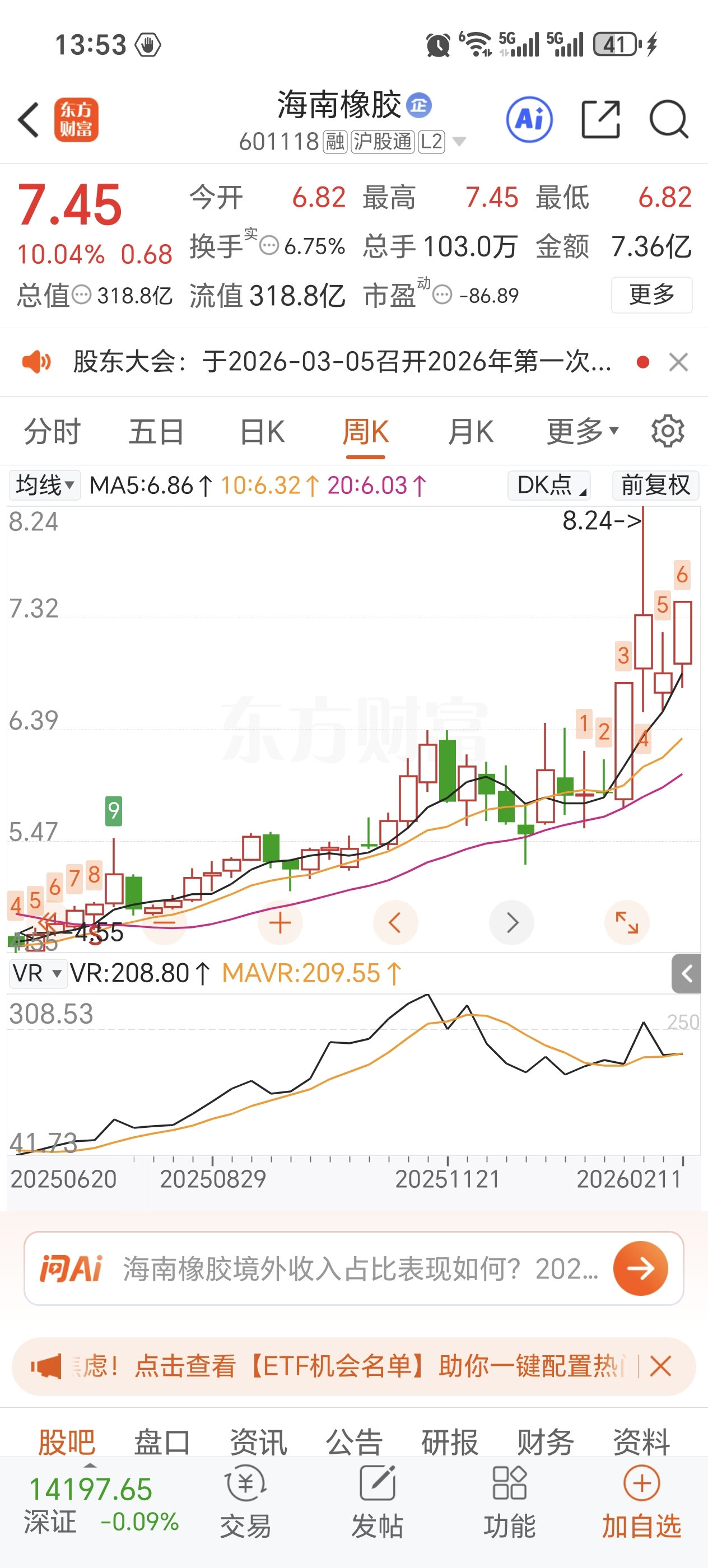 海南橡胶周线4连红,可惜了,如果上周罗牛山不大跌 周线也起飞,可惜没主力愿意玩了,里面的都是亏本的也不卖了,除非游资来救命 不然就是浪费时间了。