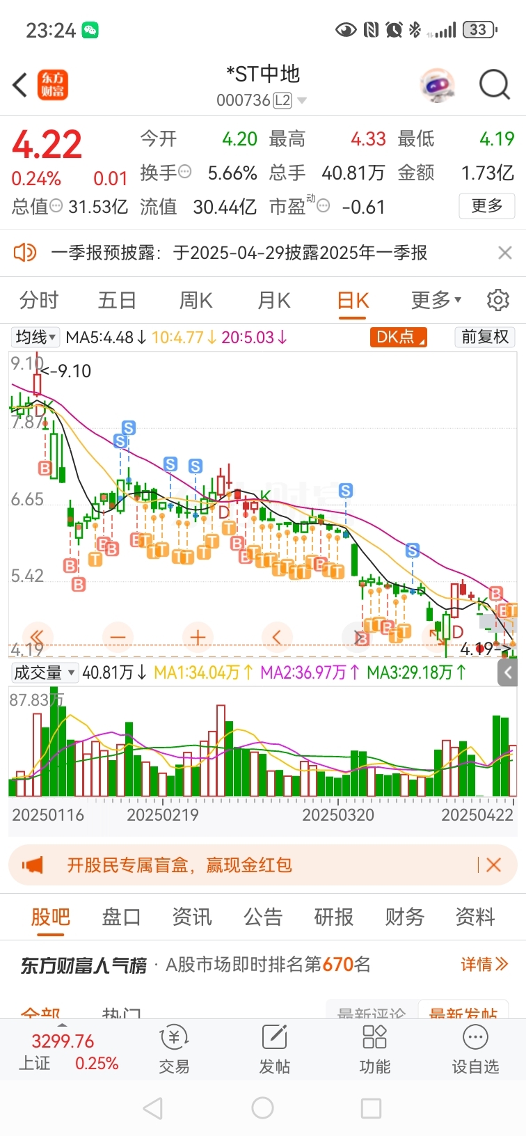 $*ST中地(SZ000736)$ 阿祖,我还没有加多少啊,目前才四成仓位啊。你得给我机会啊。
