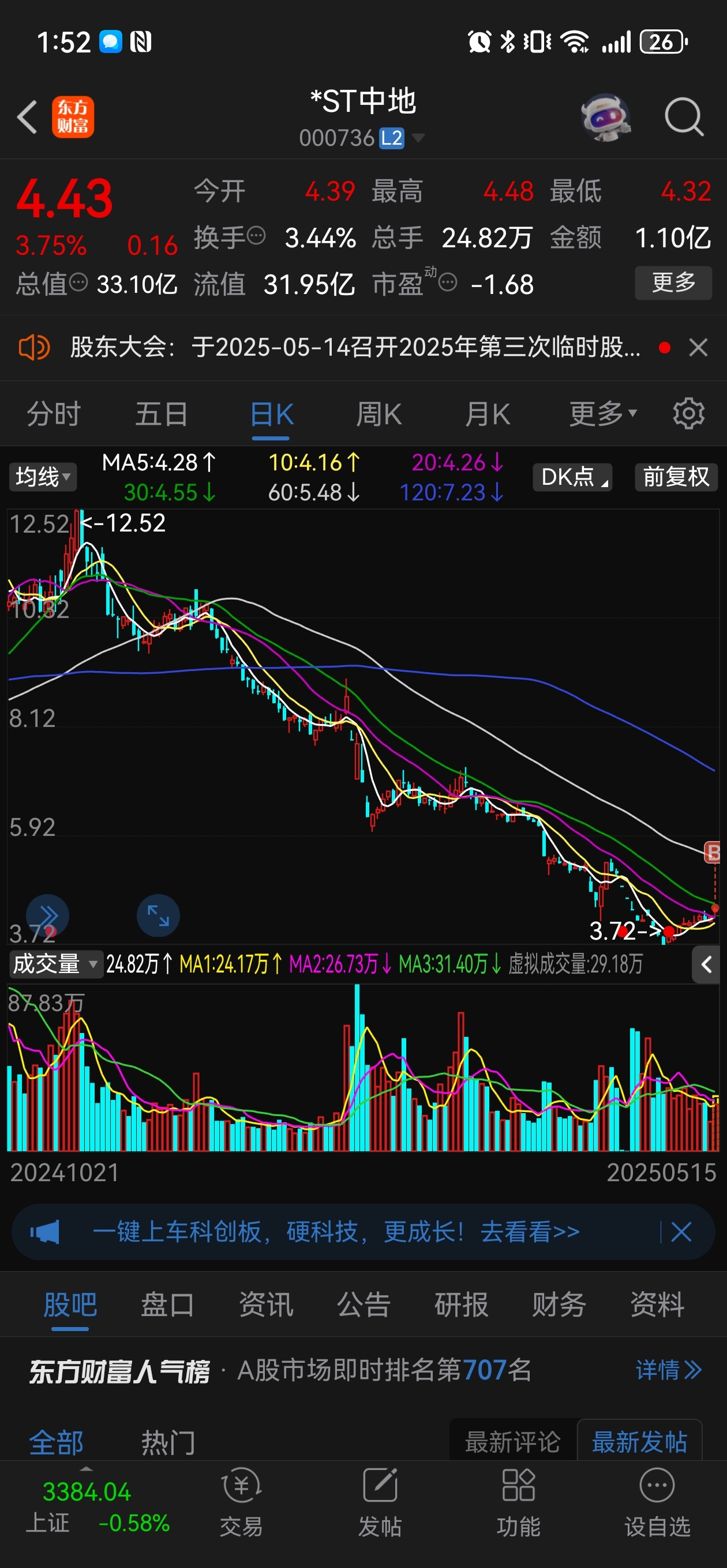 $*ST中地(SZ000736)$ 今天正式开仓中交地产,南国置业还没中交进度快都涨那么高,都是央企中交差在哪里??