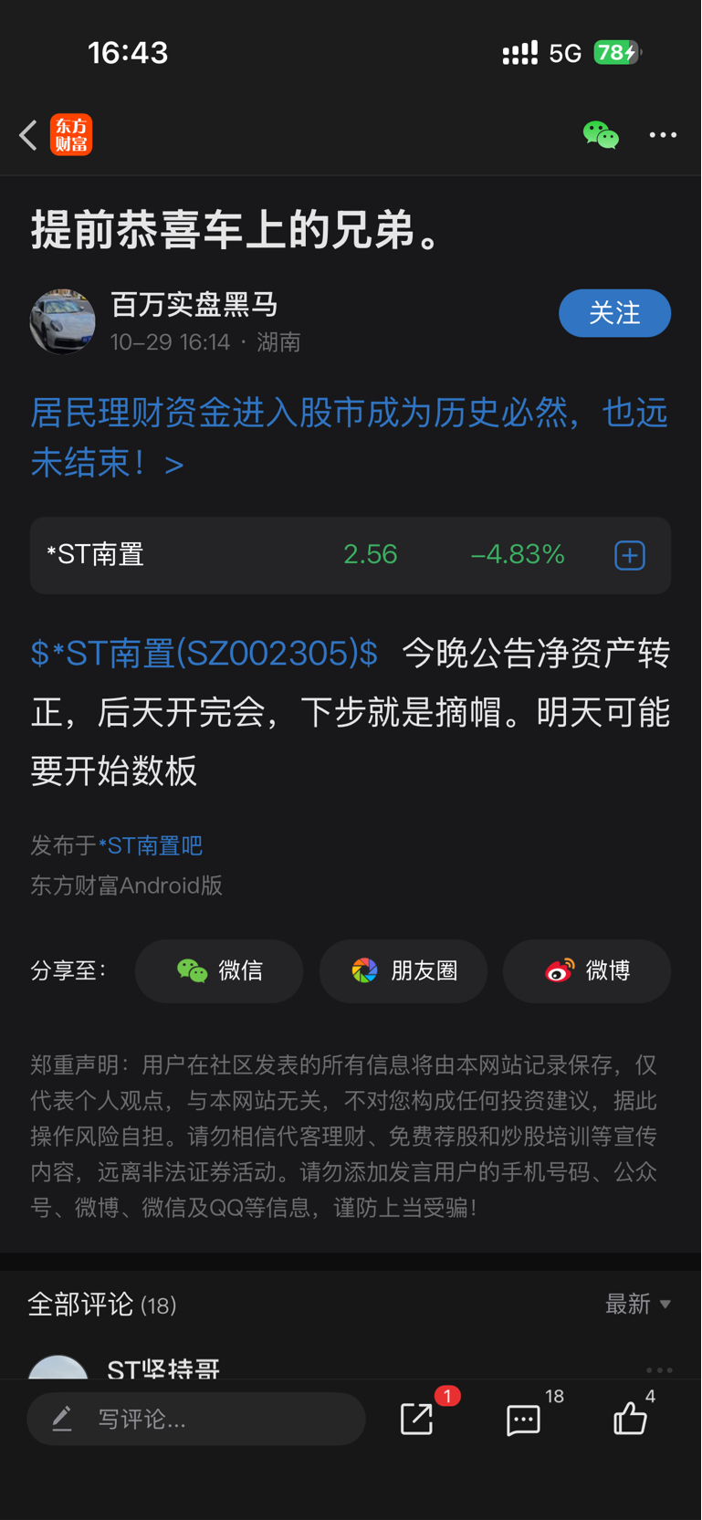 温馨提示: 1.根据《证券法》规定,禁止编造、传播虚假信息或者误导性信息,扰乱证券市场;2.用户在本社区发表的所有资料、言论等仅代表个人观点,与本网站立场无关,不对您构成任何投资建议。用户应基于自己的独立判断,自行决定证券投资并承担相应风险。《东方财富社区管理规定》