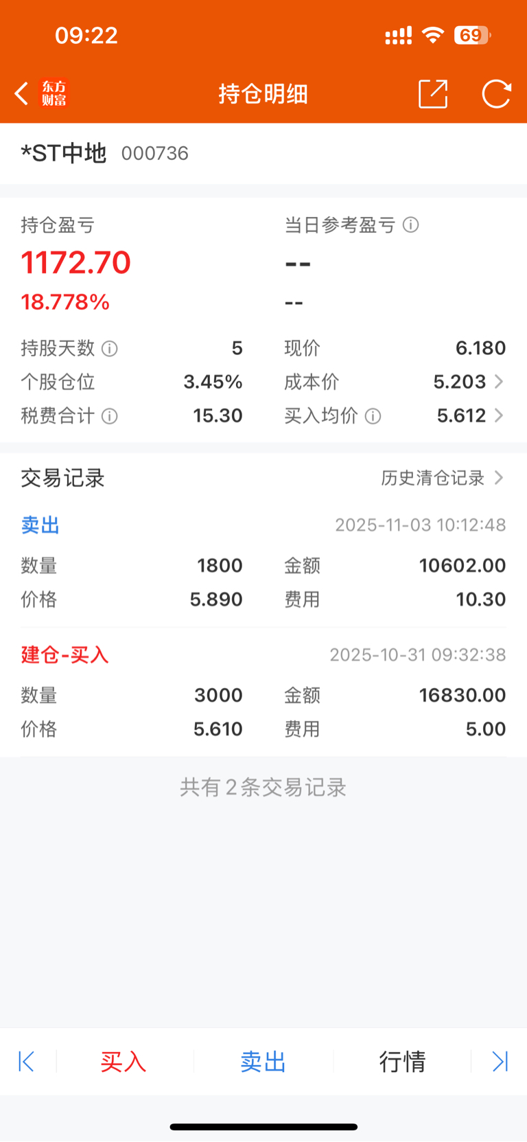 $*ST中地(SZ000736)$ 就买一点还被我卖了大部分