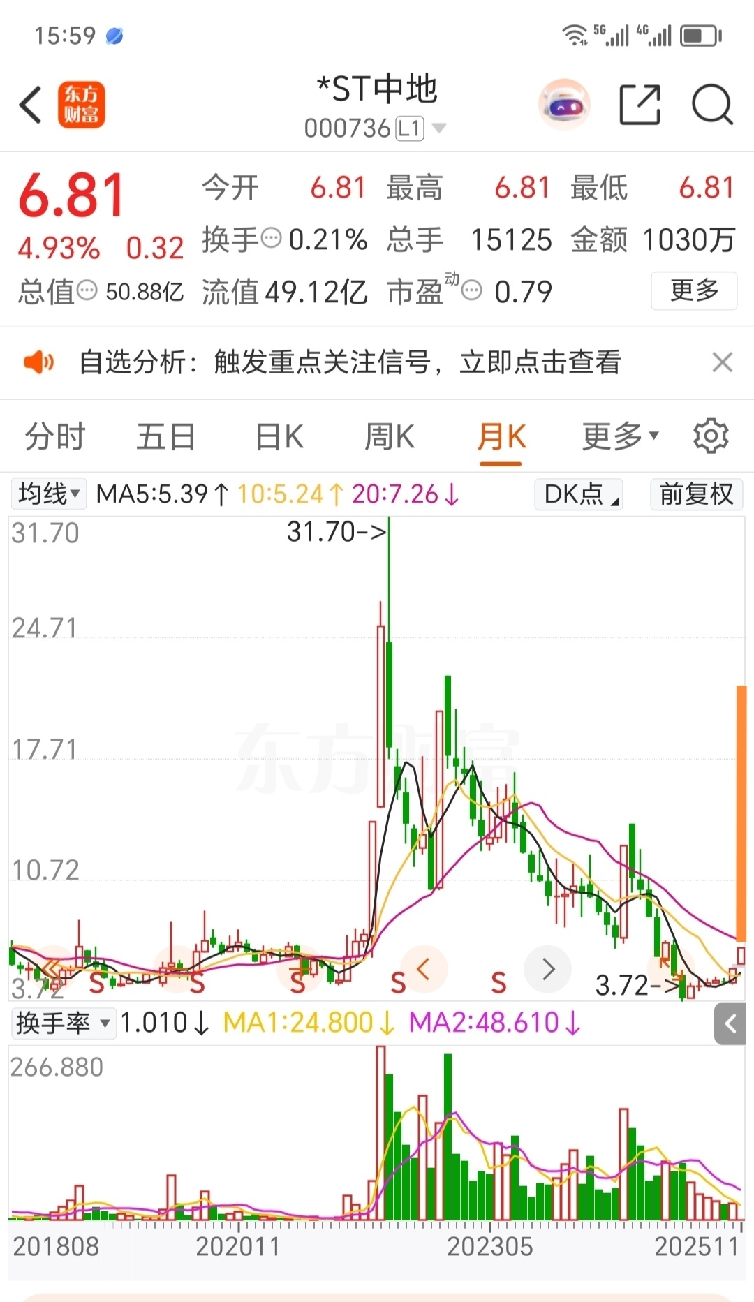 $*ST中地(SZ000736)$ 中地正在悄无声息的走出跨年十倍大妖股,大家慢慢的欣赏就行了