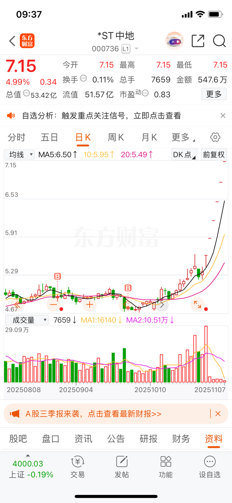 $*ST中地(SZ000736)$ 没卖,爽歪歪