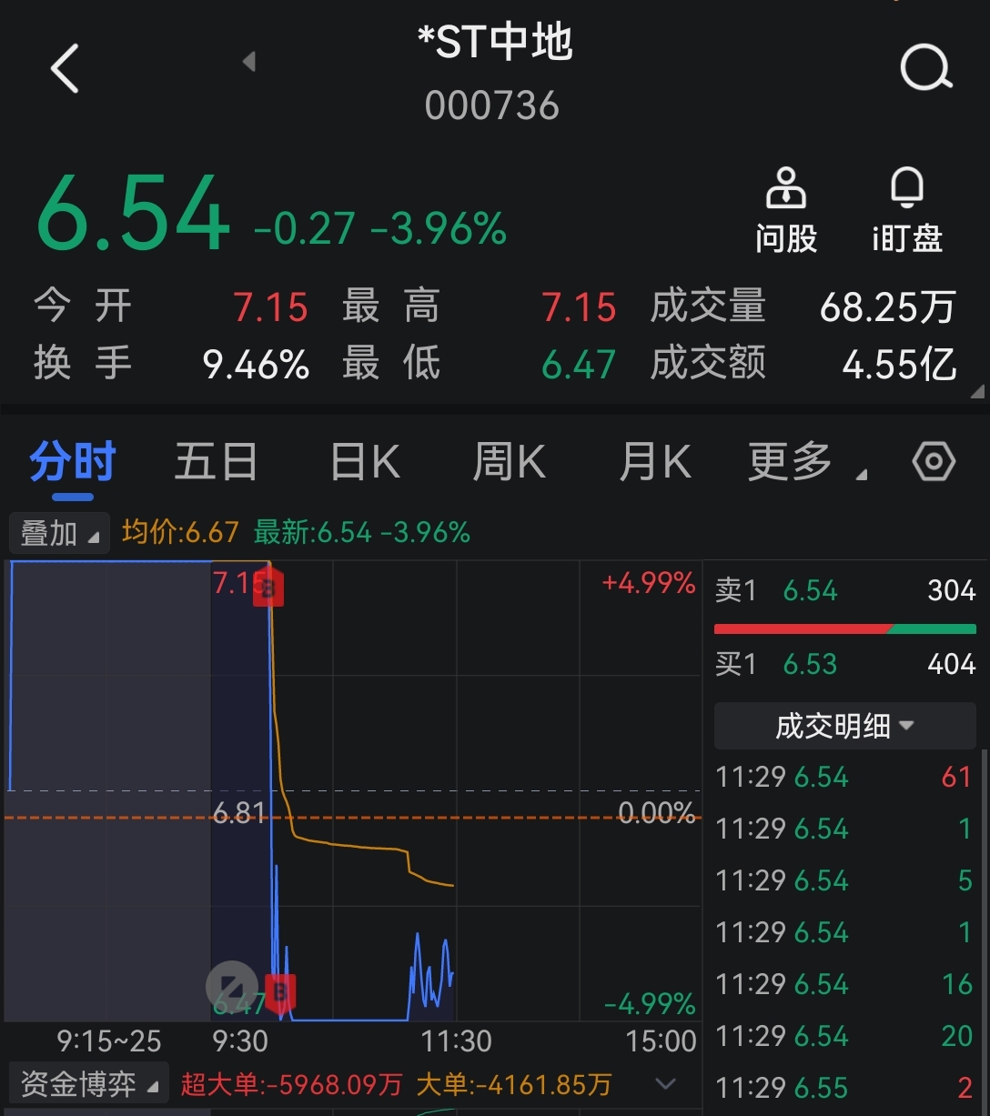 $*ST中地(SZ000736)$ 买到了,真的开心