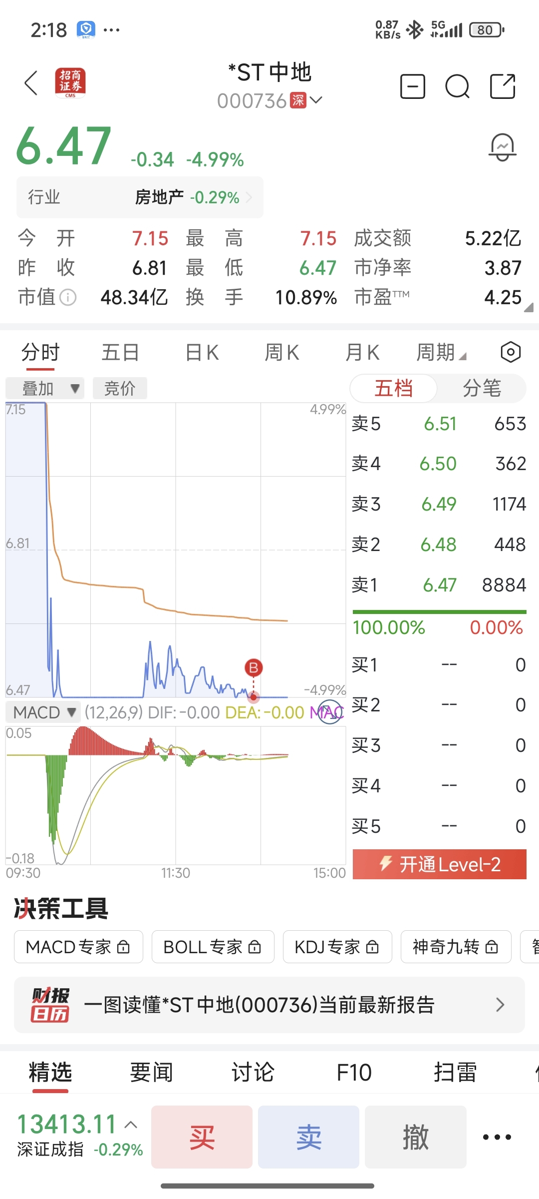 $*ST中地(SZ000736)$ 兄弟门上刺刀,我先上了