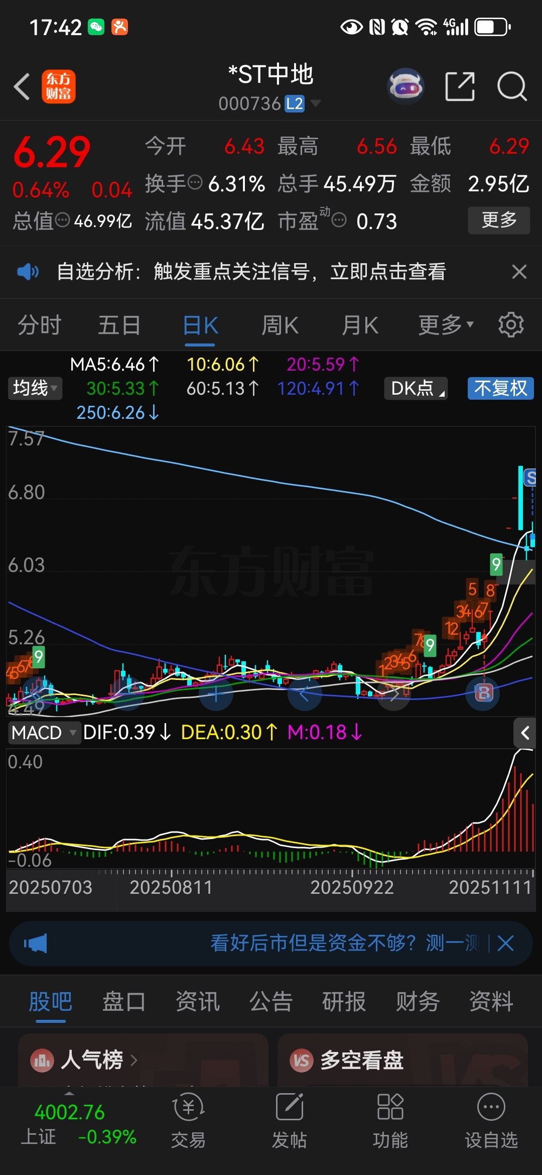$*ST中地(SZ000736)$ 少赚10个点走了,等回落到5元以下再来