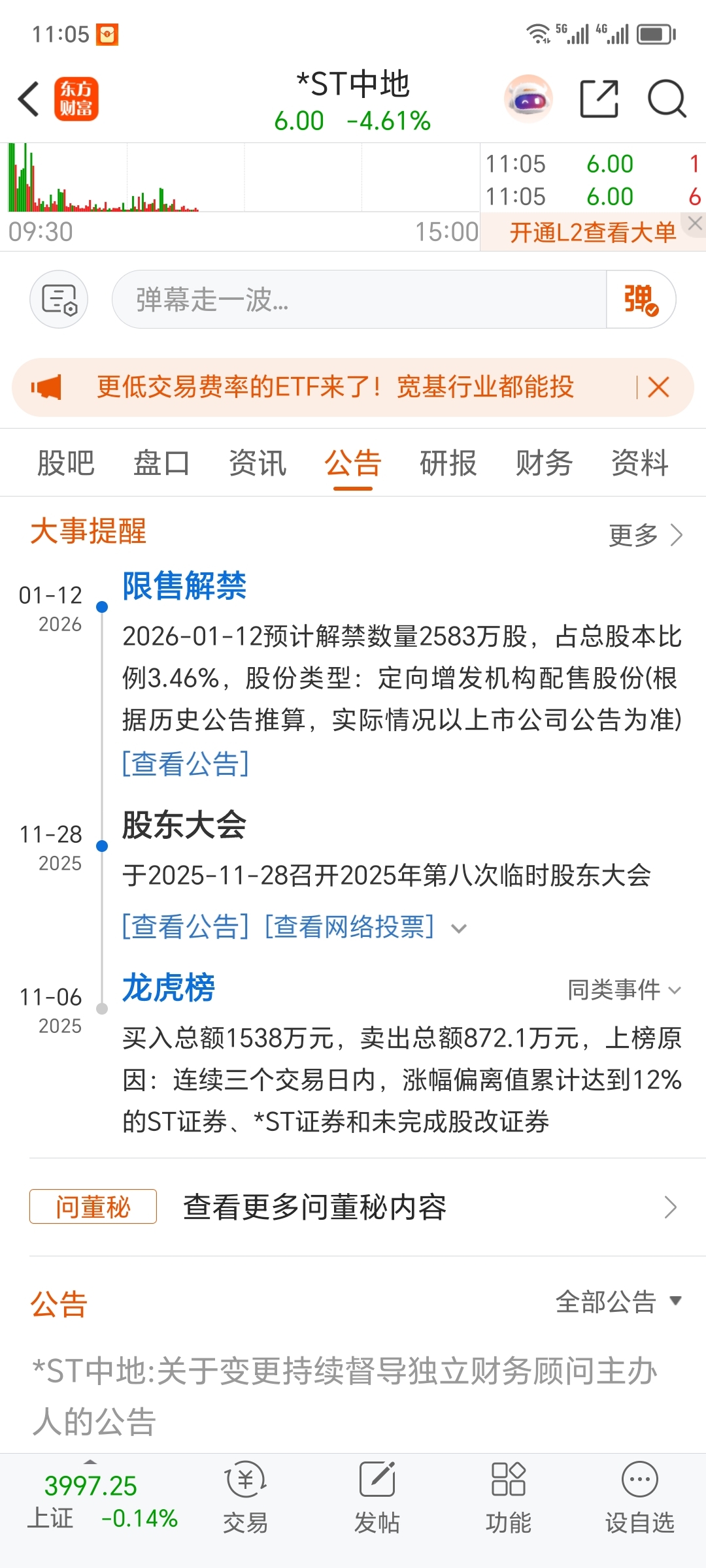 $*ST中地(SZ000736)$ 要解禁了