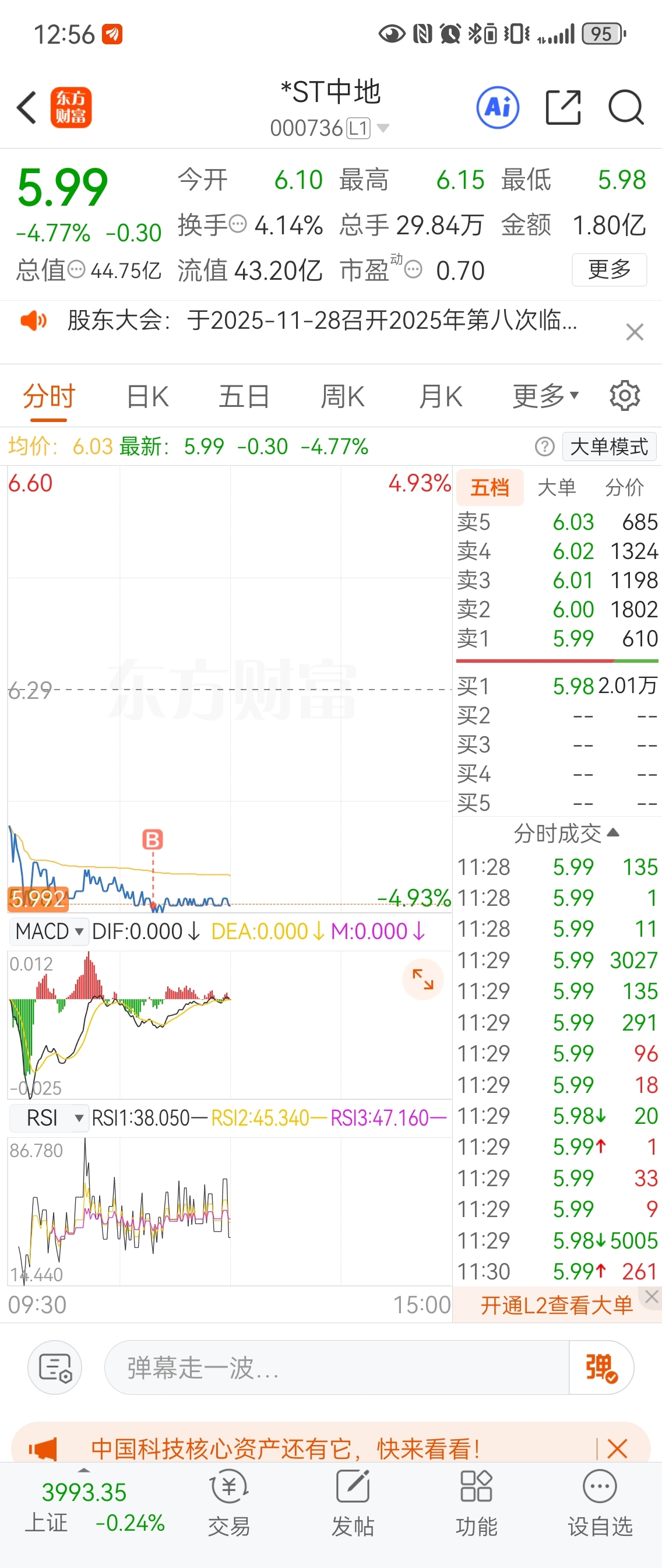 $*ST中地(SZ000736)$ 下午1点准时3万手杂盘跌停。