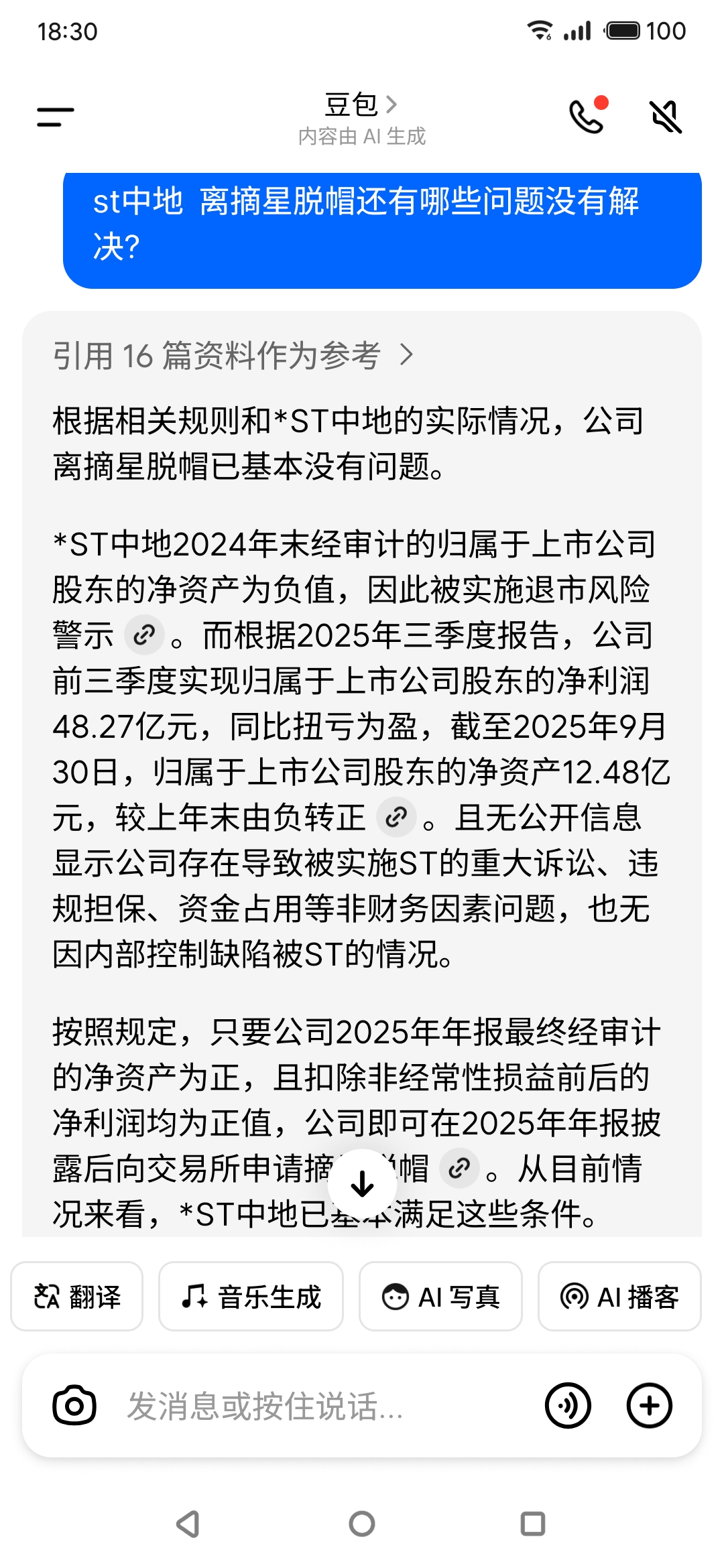 $*ST中地(SZ000736)$ 豆包说中地摘星脱帽没有任何问题!