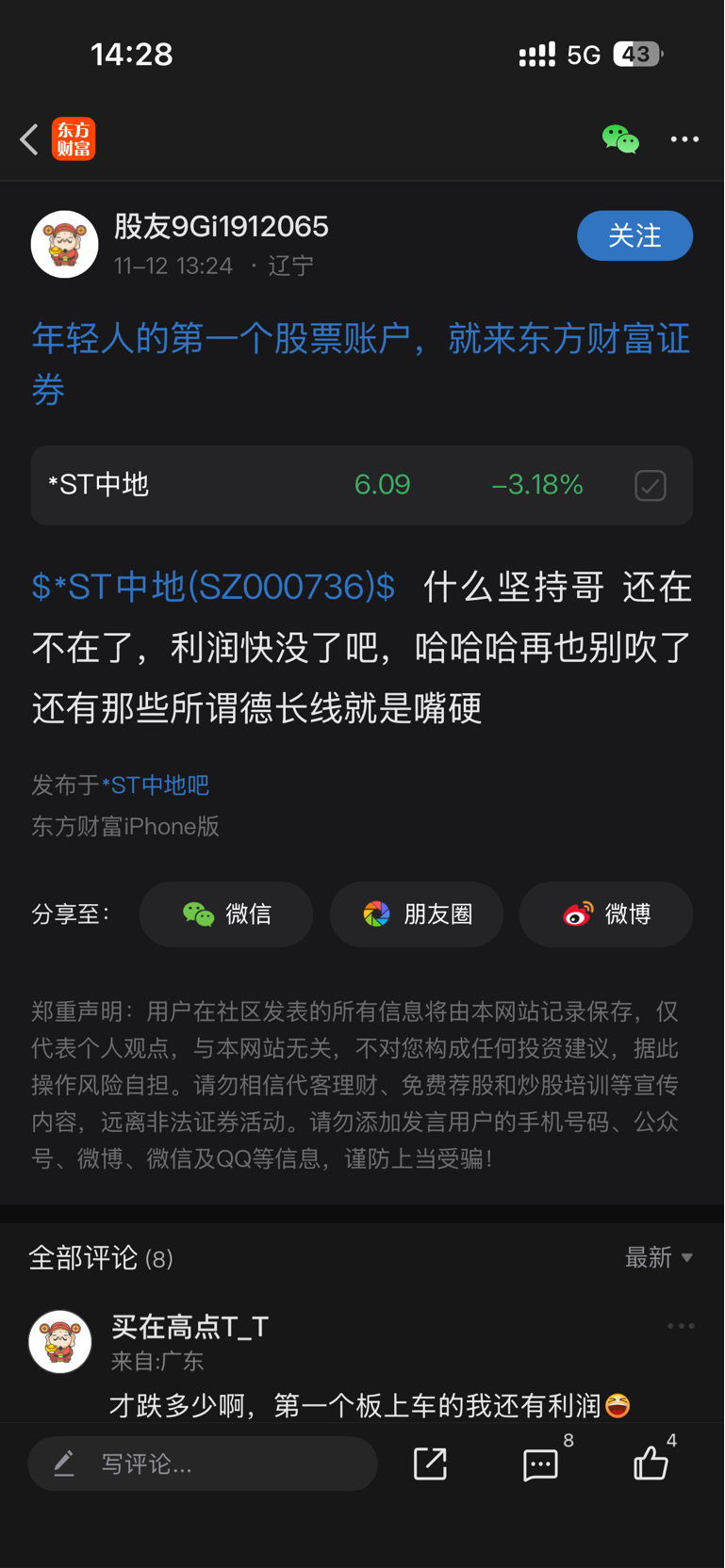 温馨提示: 1.根据《证券法》规定,禁止编造、传播虚假信息或者误导性信息,扰乱证券市场;2.用户在本社区发表的所有资料、言论等仅代表个人观点,与本网站立场无关,不对您构成任何投资建议。用户应基于自己的独立判断,自行决定证券投资并承担相应风险。《东方财富社区管理规定》