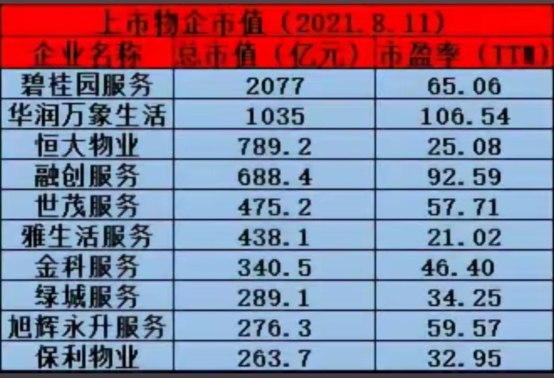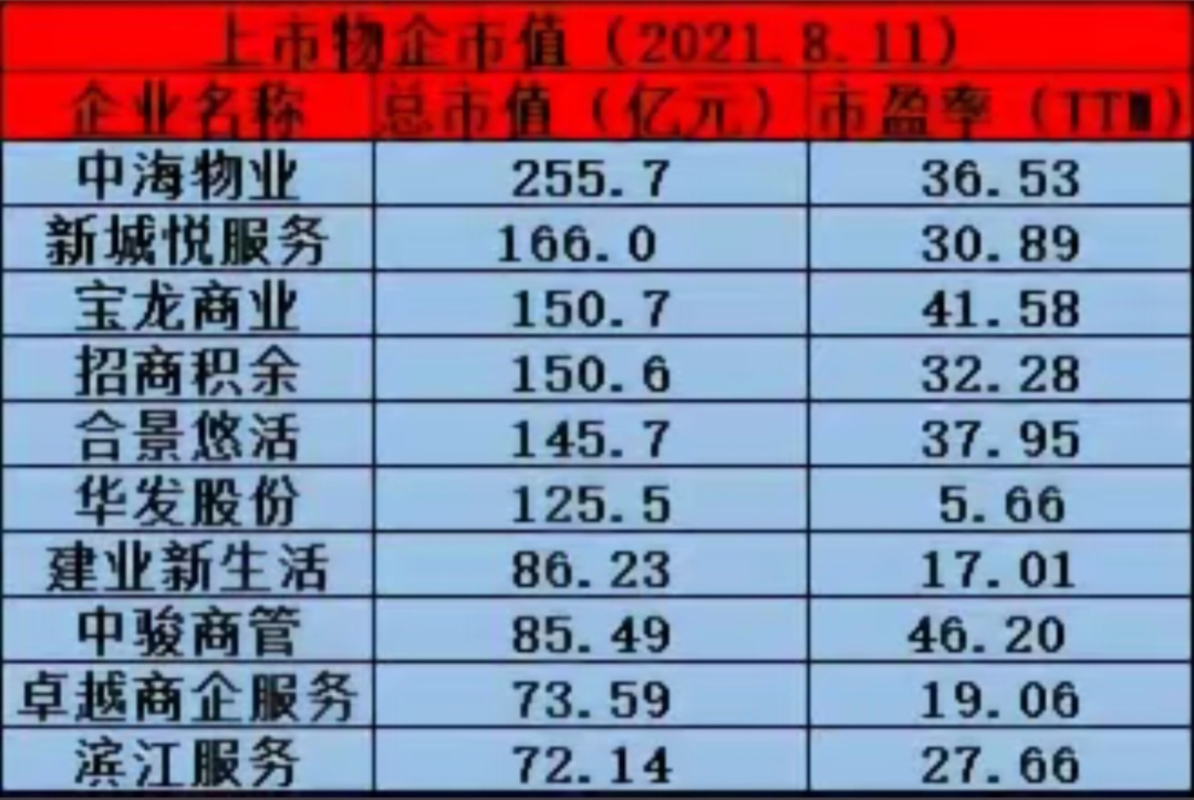 这是全国物业市值排名,做为央企的中地,看看它的市值高吗?