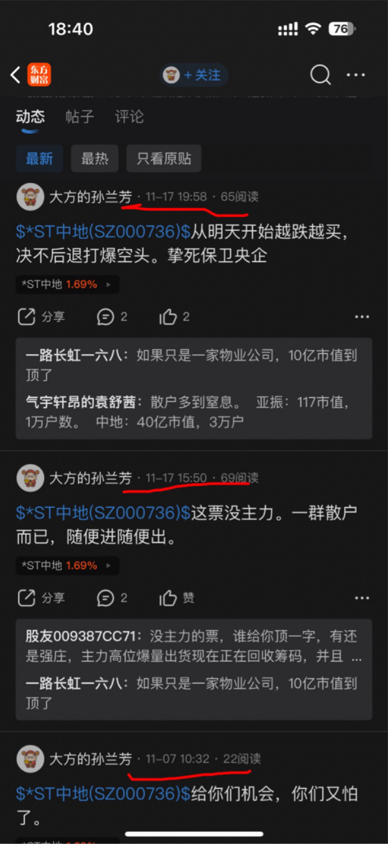 $*ST中地(SZ000736)$ 11月7号天地板让散户买,17号下跌中继继续让散户买,增多6000散户功劳它有一份,大家小心
