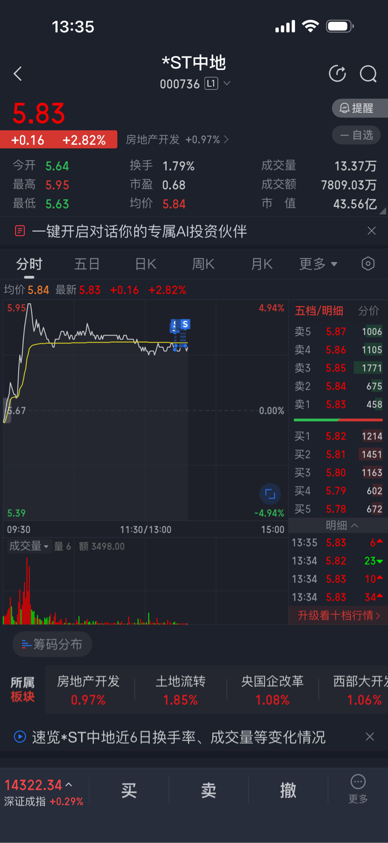 $*ST中地(SZ000736)$ 走了,又不动了