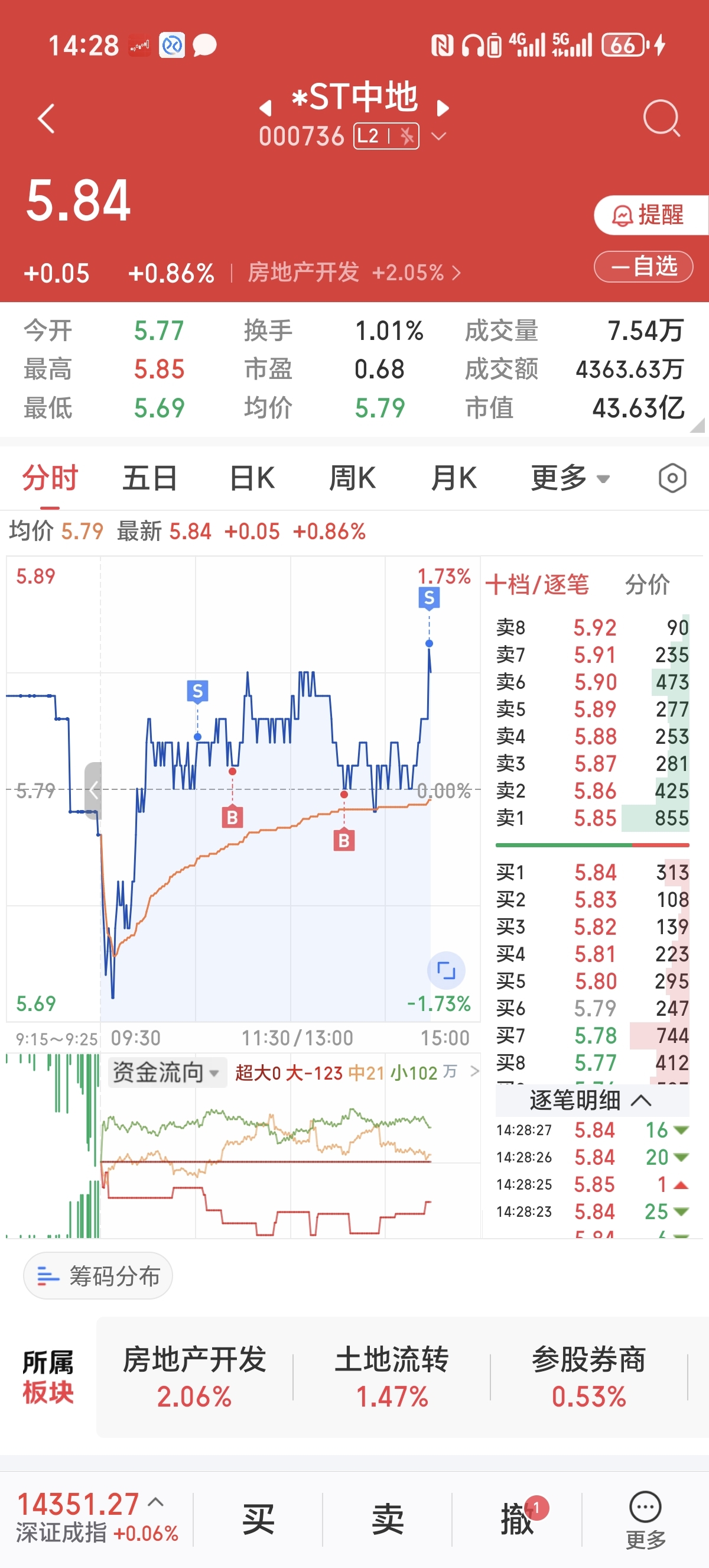 $*ST中地(SZ000736)$ 跌下去要敢买,涨上去要舍得卖