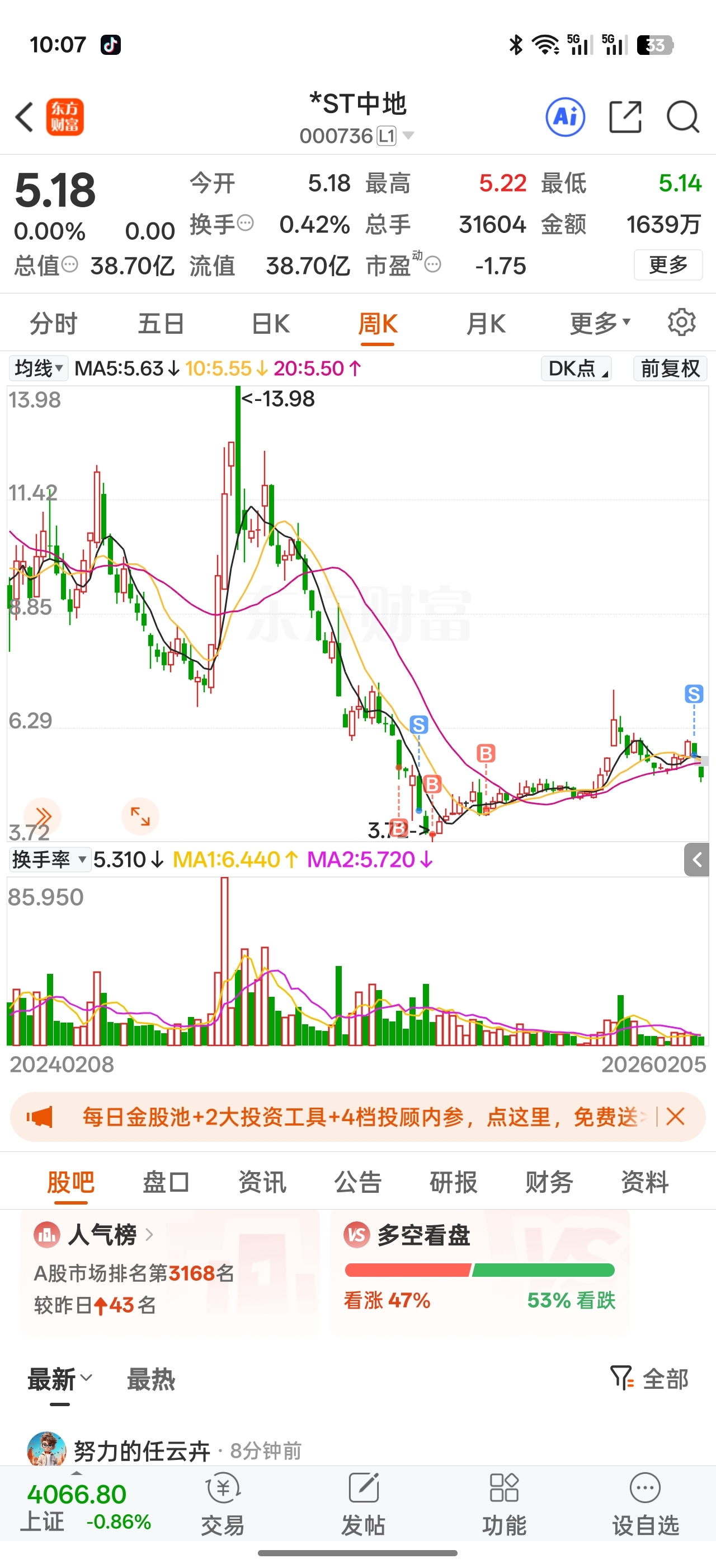 $*ST中地(SZ000736)$ 茜茜,其实我赚了十个点