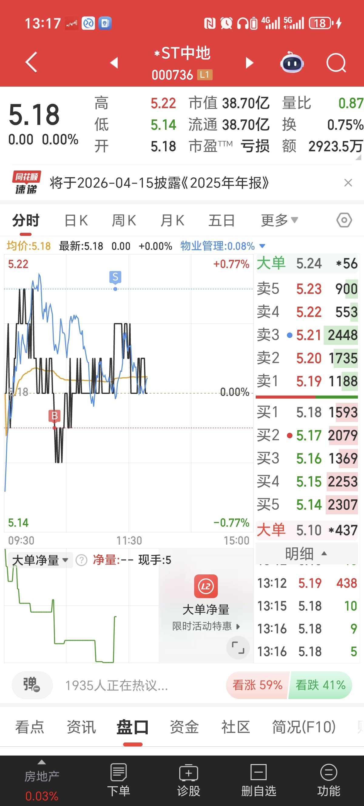 $*ST中地(SZ000736)$ 为了烟渚兄弟,我在托一笔