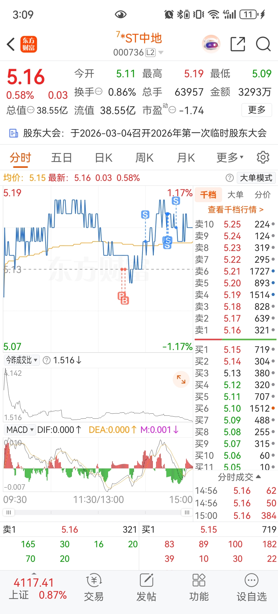 $*ST中地(SZ000736)$ 继续t,差价到手~