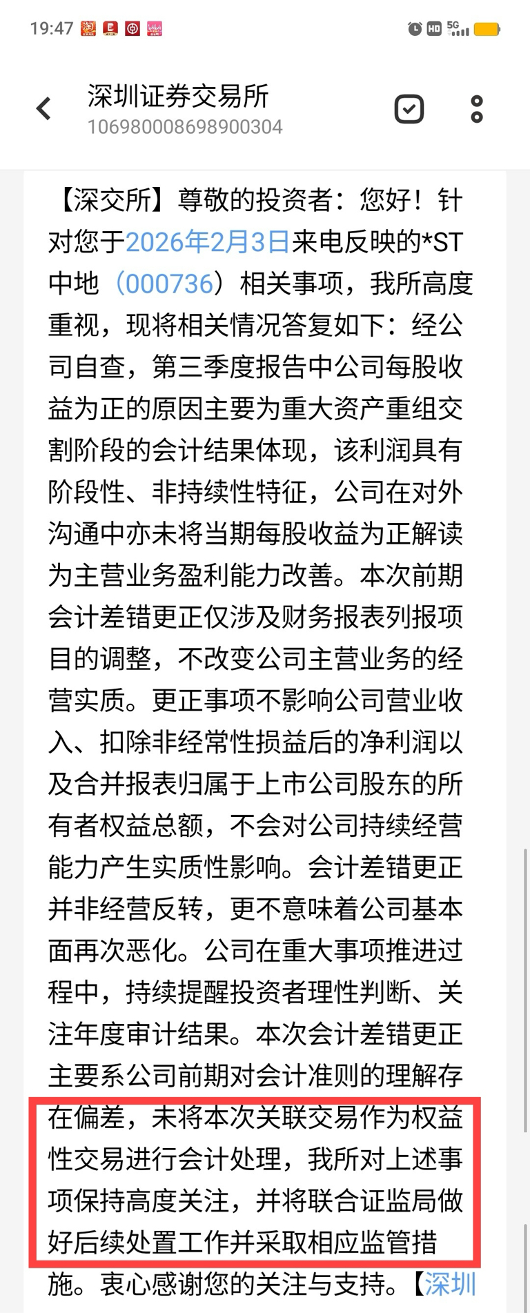 $*ST中地(SZ000736)$ 年报利润由盈利48亿修正为亏损,问题已不在业绩波动,而在信息质量。既然利润能够反转,12亿净资产同样可能被重估;一旦再度转负,退市将不再是猜测,而是路径。资金持续撤离,本质上是在对报表可信度投下反对票。