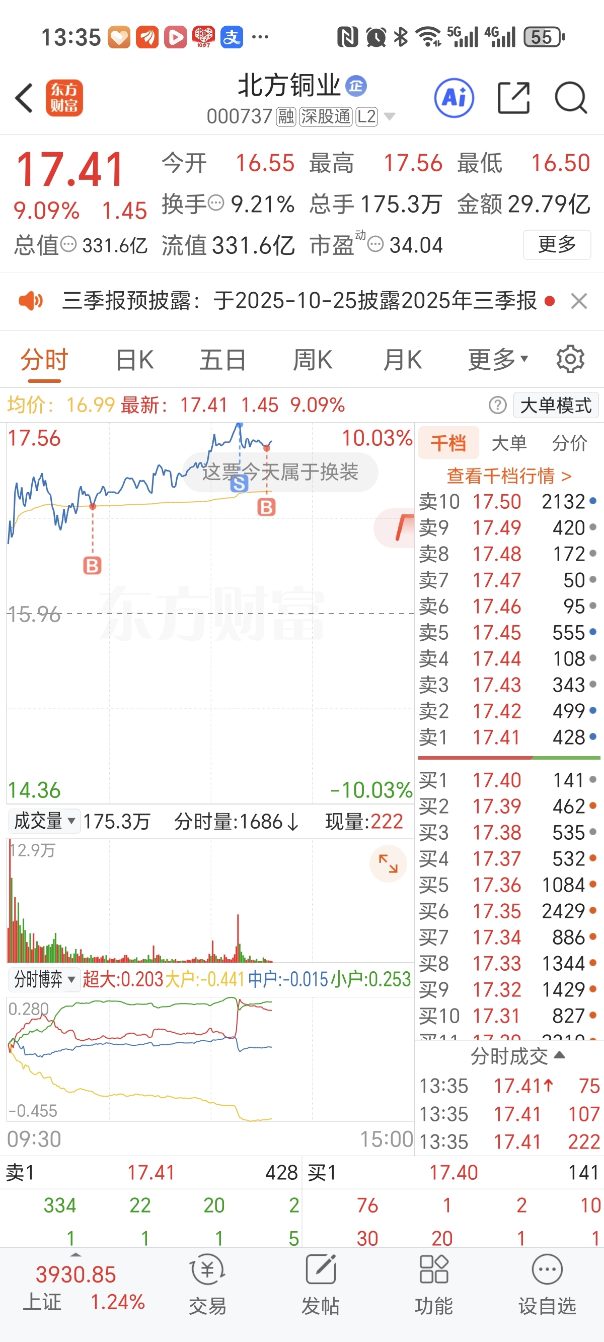 $北方铜业(SZ000737)$ 今天就这样了。。。