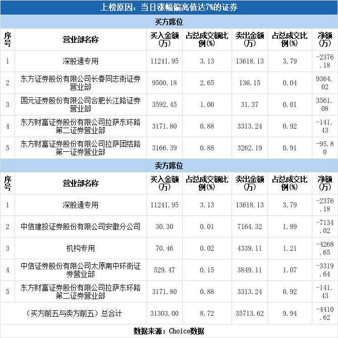 多主力现身龙虎榜,北方铜业涨停(10-09)