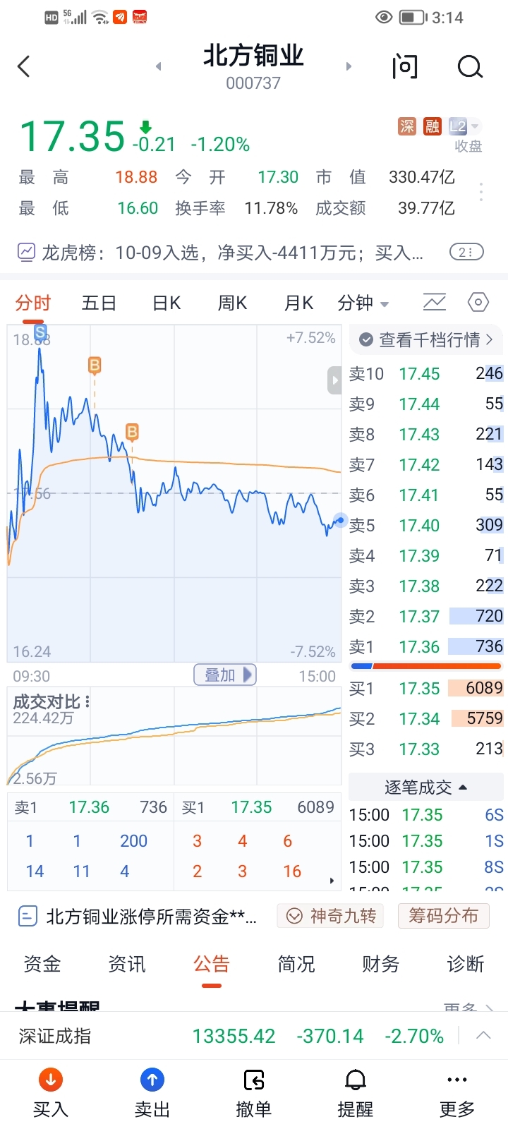 $北方铜业(SZ000737)$ 怕啥,没看到江西铜业跌部下去,今天跟随大盘回调,最高点卖,跌下来又慢慢买进来