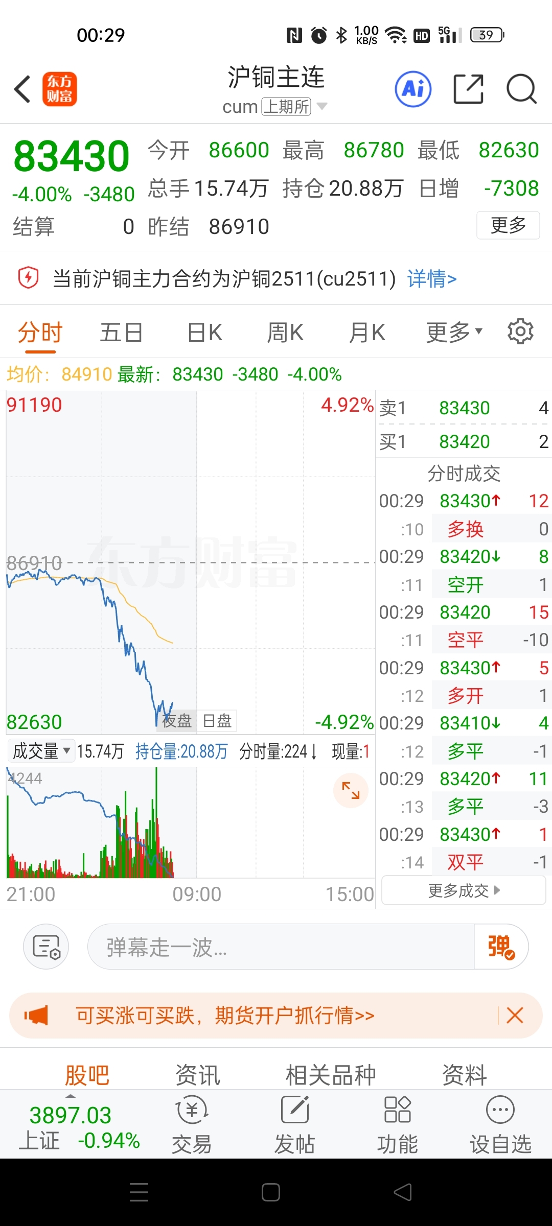 $北方铜业(SZ000737)$ 铜期货暴跌