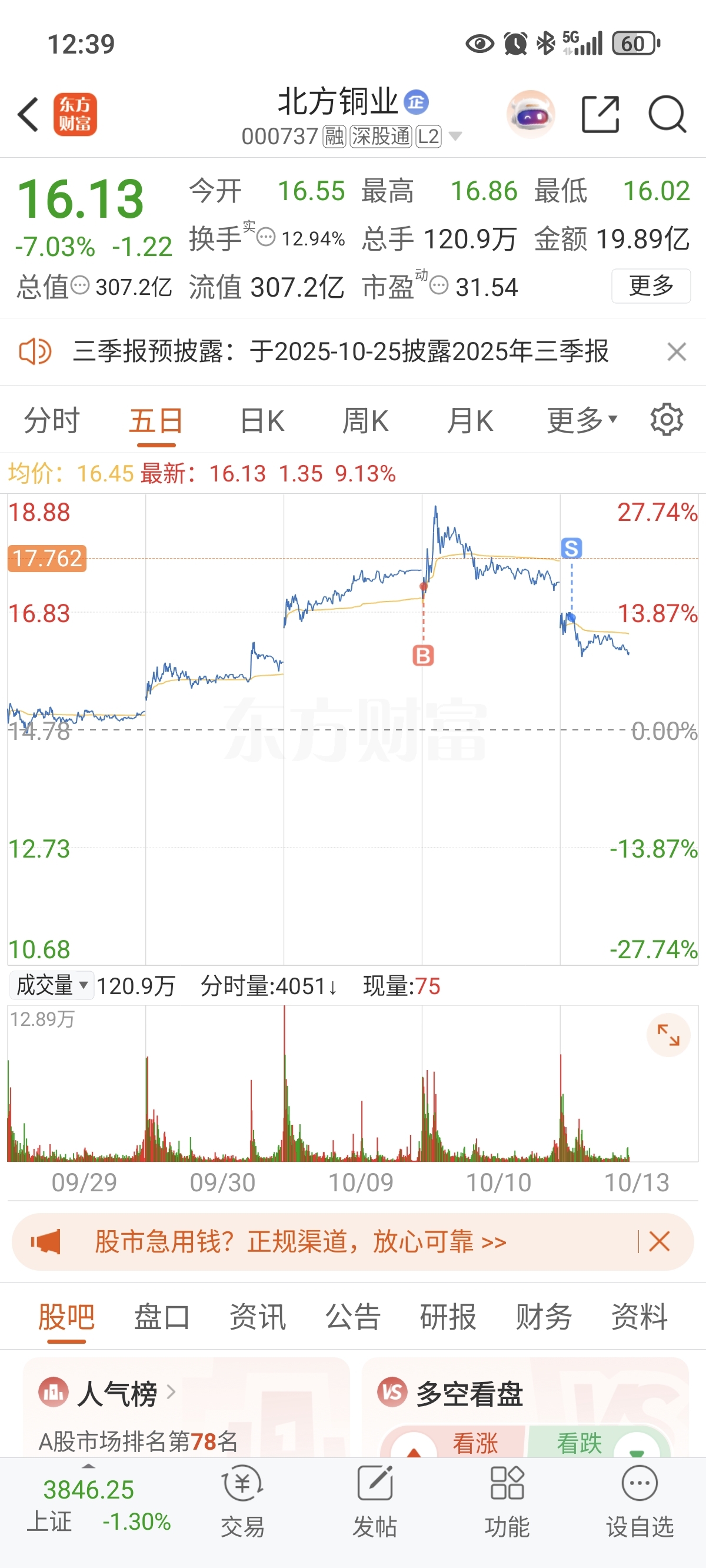 $北方铜业(SZ000737)$ 从浮盈1600现在亏1000,2万仓位这么狠