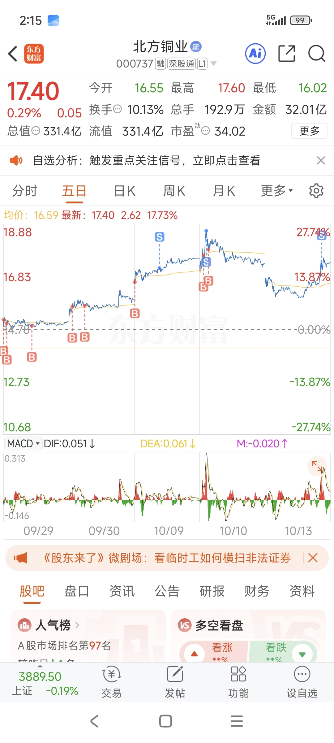 $北方铜业(SZ000737)$ 全仓来着,昨天出了半仓挂了个隔夜单进江西铜