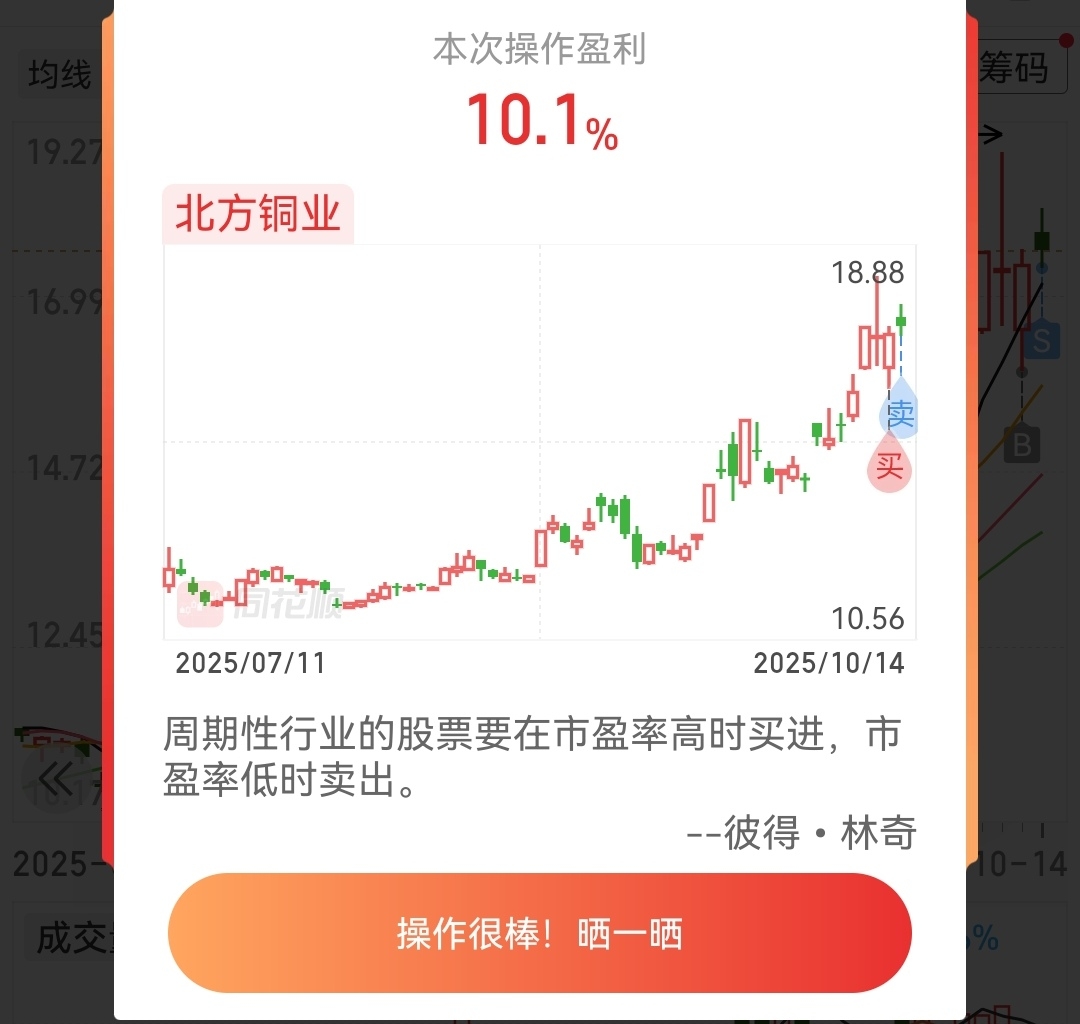 $北方铜业(SZ000737)$ 再见,已经翻了几倍市场还一致看好就知道该走了。