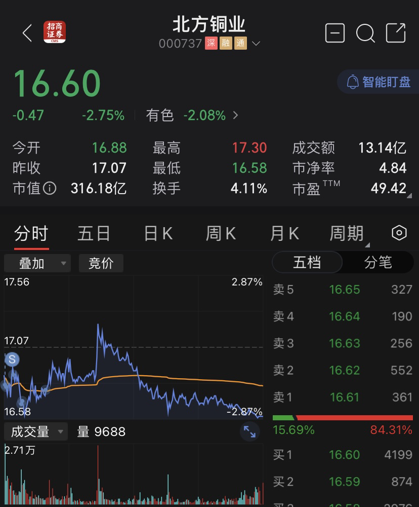 $北方铜业(SZ000737)$ 16.80附近清了去中概互联网避难,过两天回。