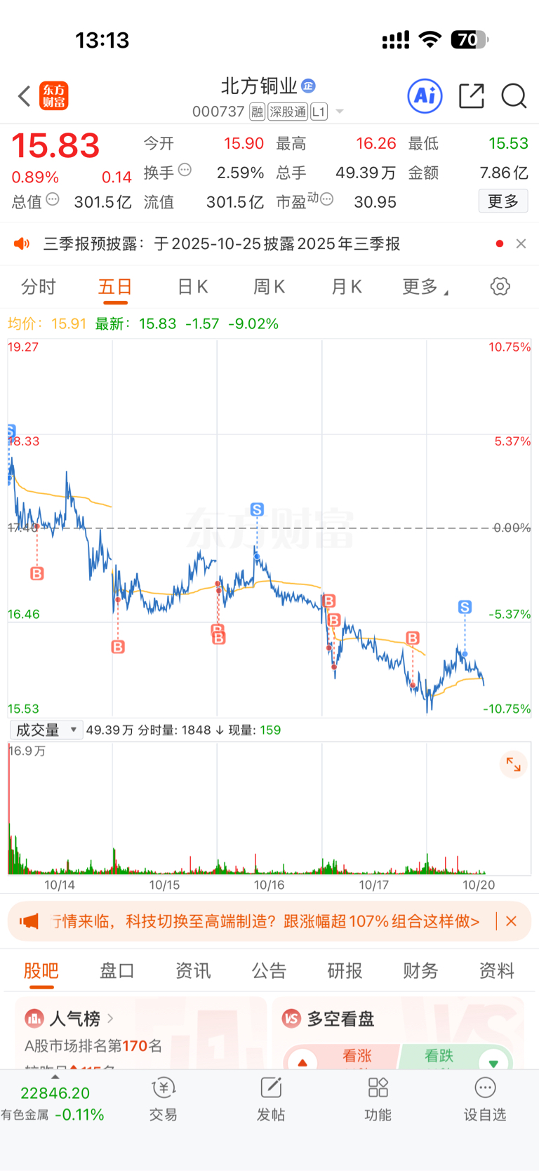 $北方铜业(SZ000737)$ 老妖怪,快让我盘你!