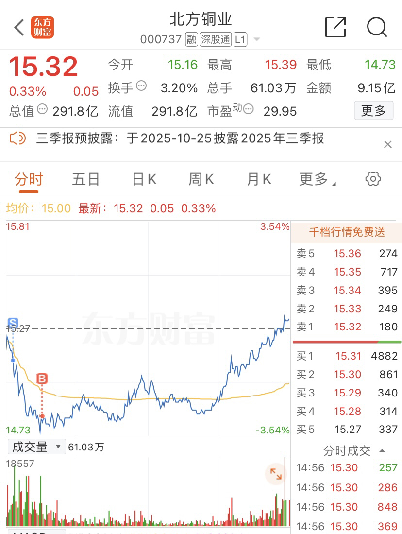 $北方铜业(SZ000737)$ 微微少量做个差价,仍然重仓持有,截止收盘,今天是个红盘,几乎没有回撤,收盘后期货铜飞涨,终于又可以赚钱啦。