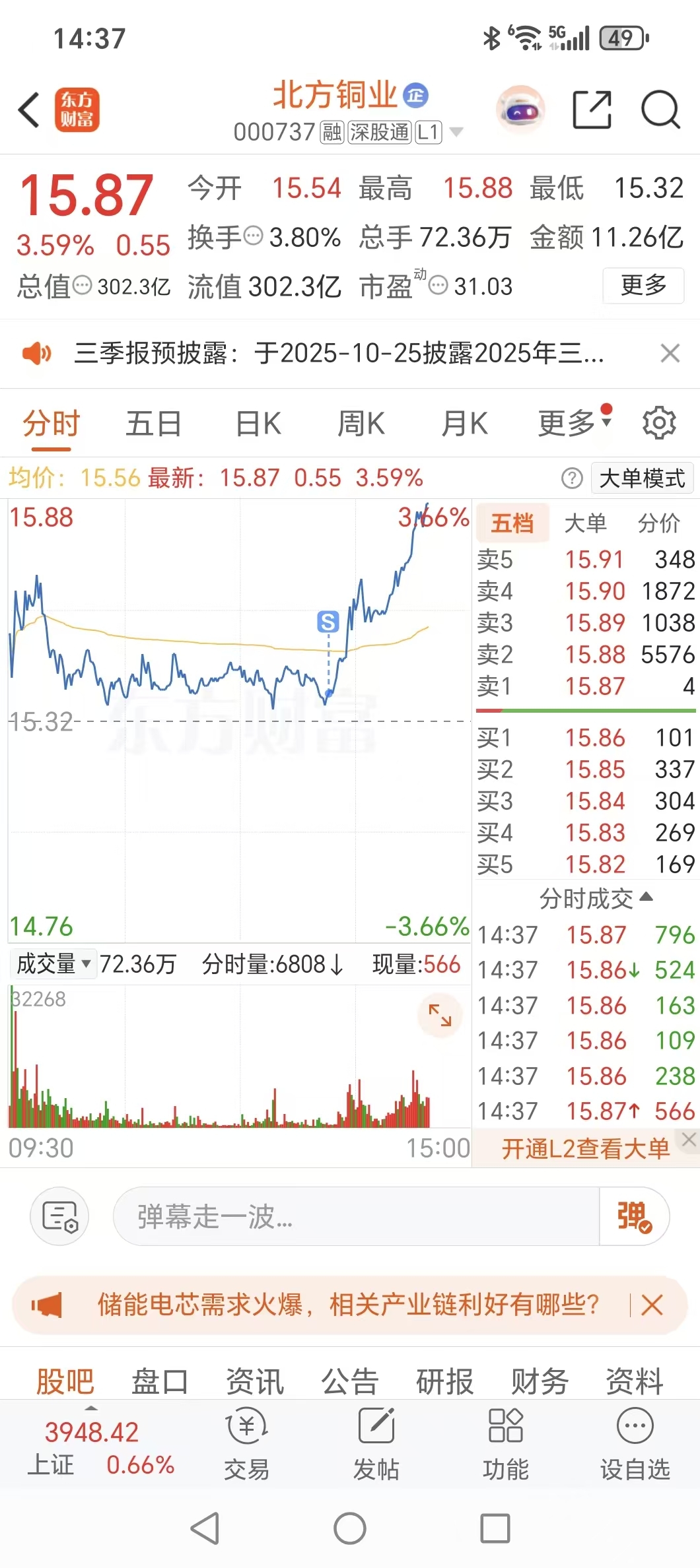 $北方铜业(SZ000737)$ 这卖点把握的何其精准,主力就差我这点筹码