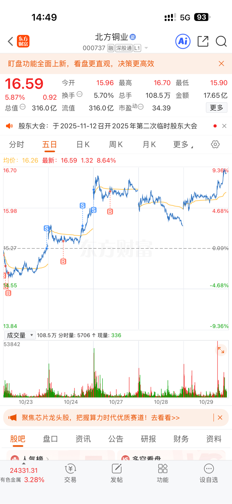 $北方铜业(SZ000737)$ 我最爱的还是我的老妖怪