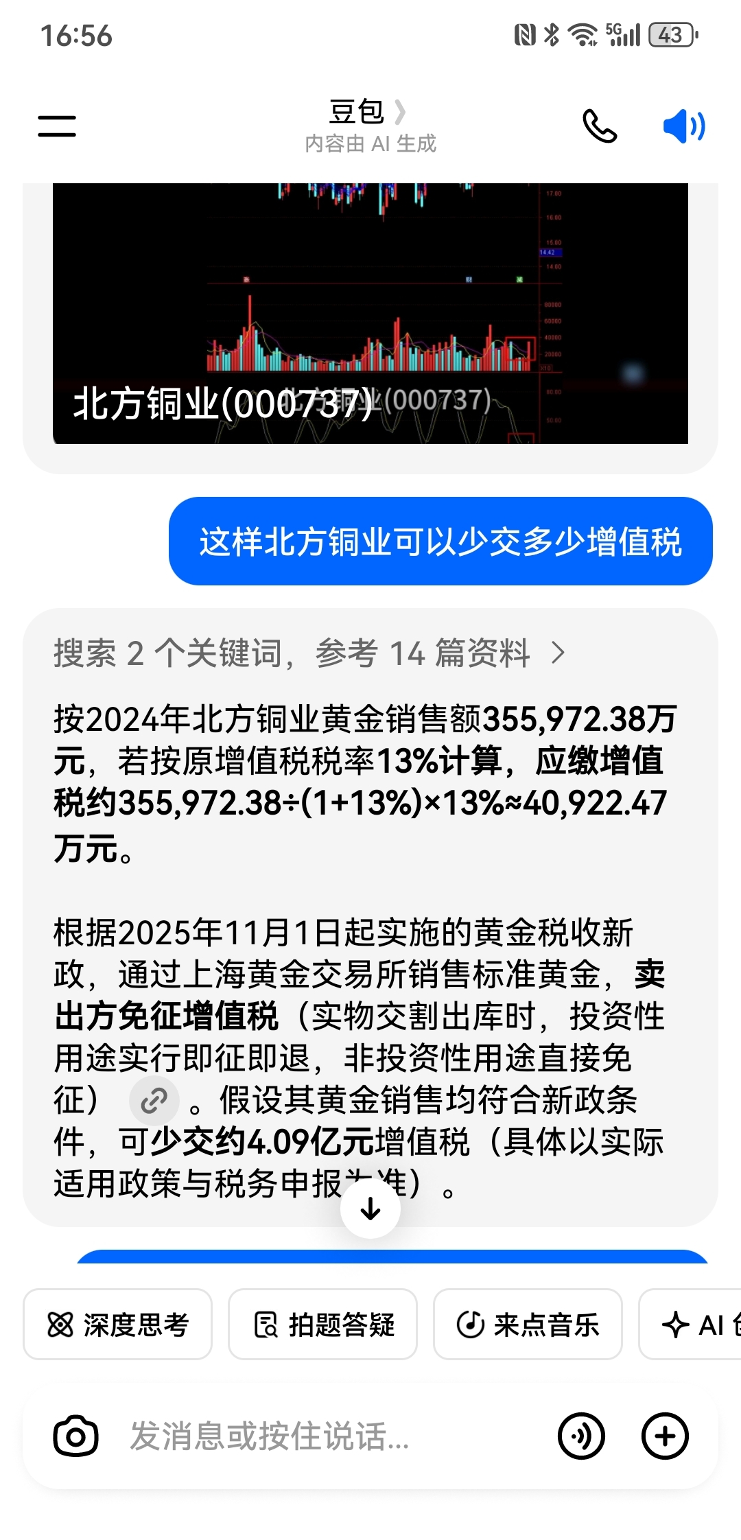 $北方铜业(SZ000737)$ 黄金新税收政策,北方铜业可以少交增值税4亿