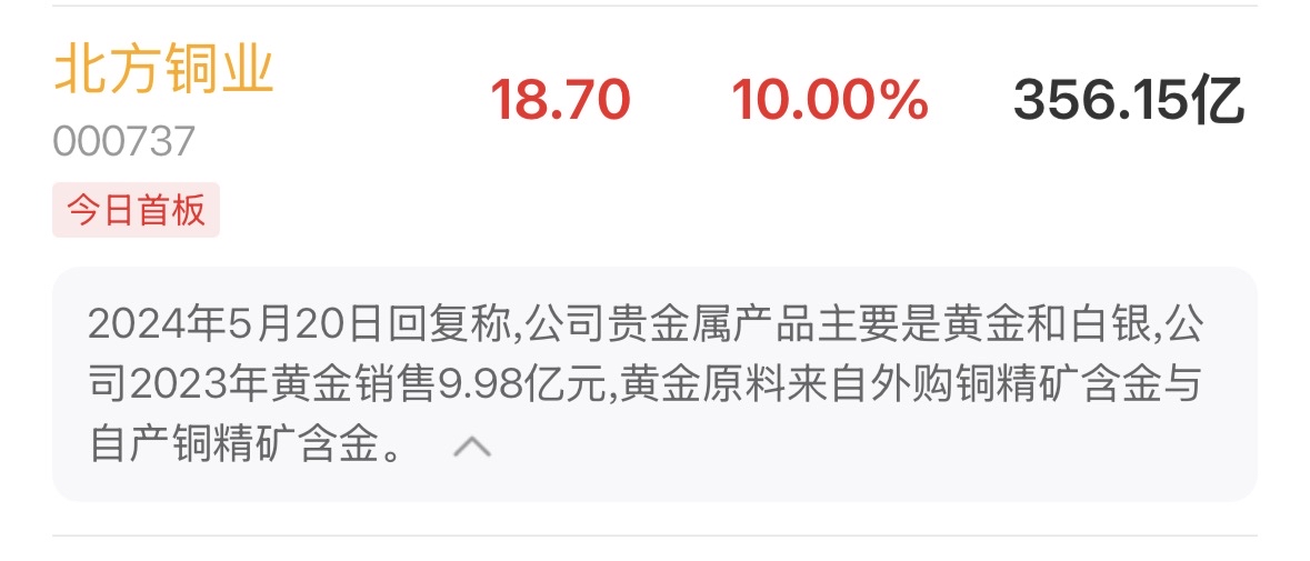 $北方铜业(SZ000737)$ 白银黄金