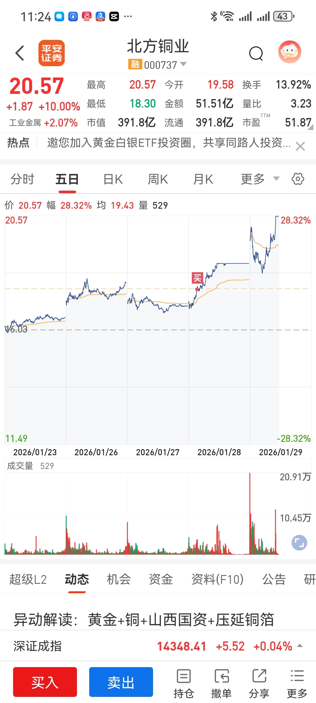 北方铜业,今日高开到水下,又从水下拉回涨停,不知有多少人被洗出去,没被洗出去的基本掌握了主力的用意。坚定主力的思路。