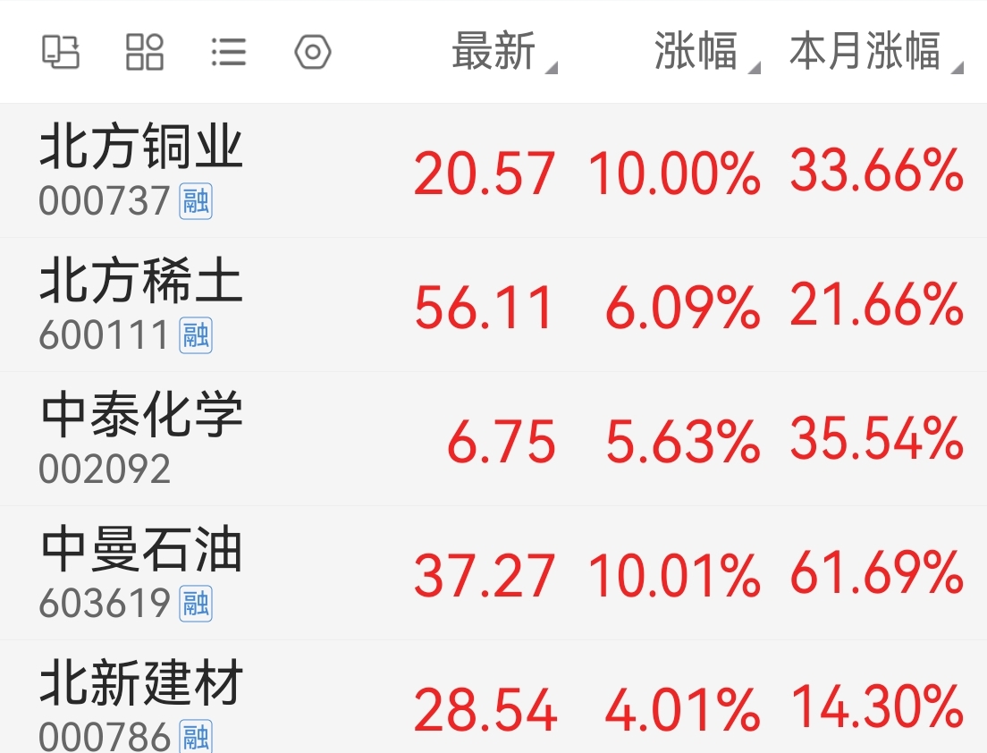 $北方铜业(SZ000737)$ $北方稀土(SH600111)$ $中泰化学(SZ002092)$
