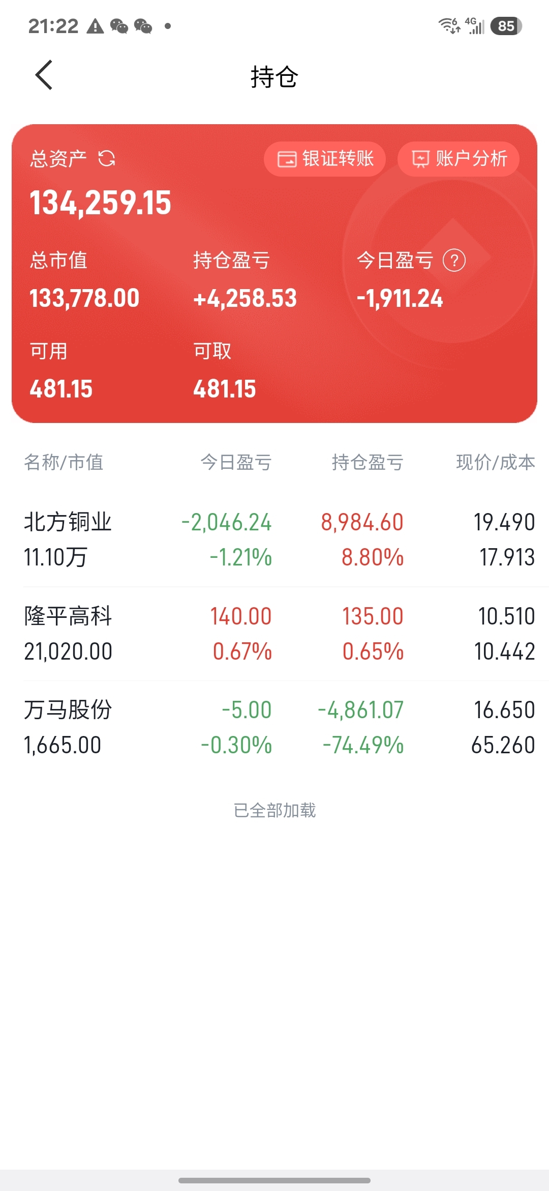 $北方铜业(SZ000737)$ 明天大概率水下来,还有点利润,也不跑,高卖低买了,不行在加仓了
