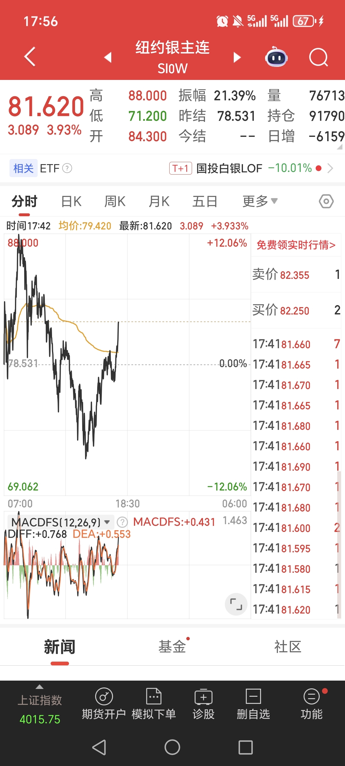 纽约银主连大涨了