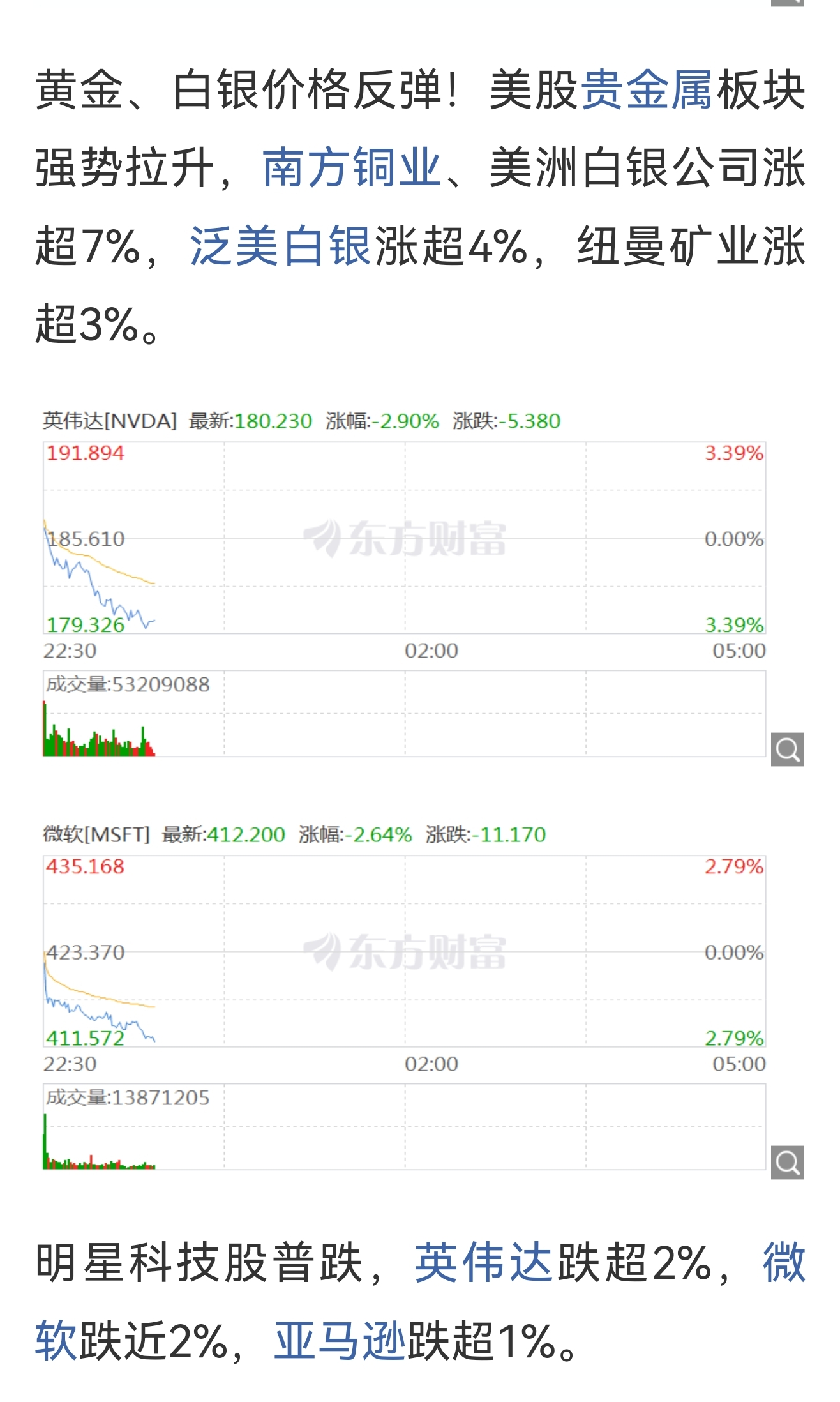 $北方铜业(SZ000737)$ 北京时间2.月3日晚美股矿业股大涨南方铜业美洲白银7%以上,科技股纳斯达克下跌