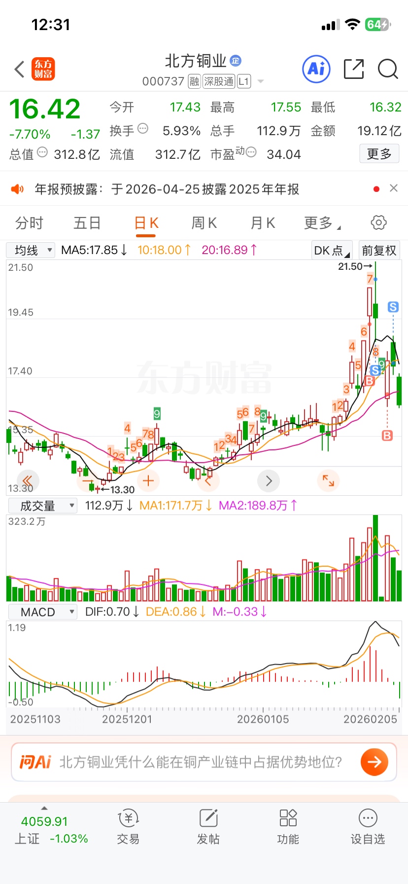 $北方铜业(SZ000737)$ 别的票都亏,只有北铜让我赚