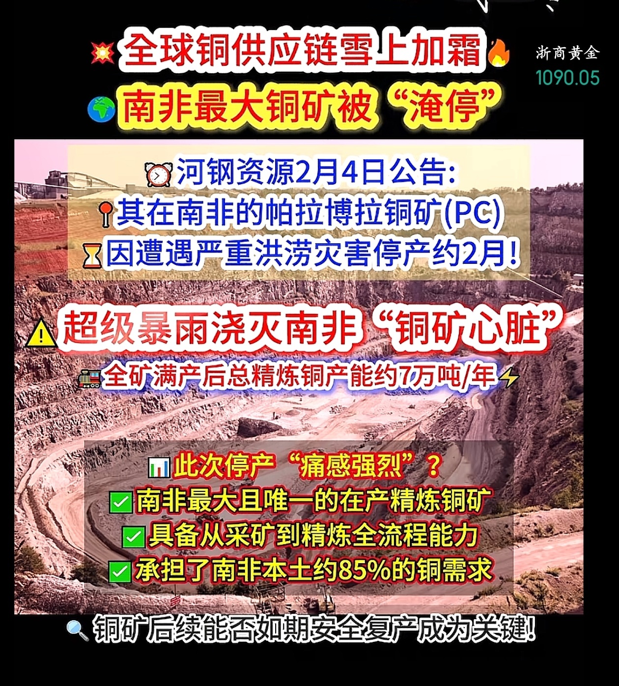 南非铜矿被淹,明天看北方铜业怎么表演