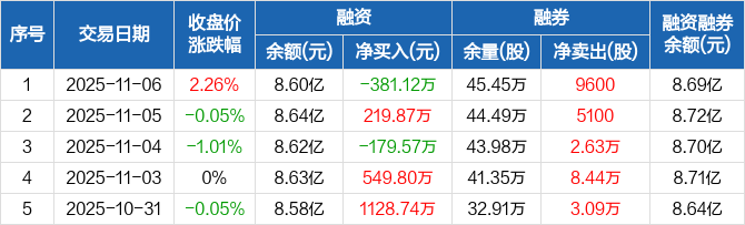 航发控制:融资净偿还381.12万元,融资余额8.6亿元(11-06)