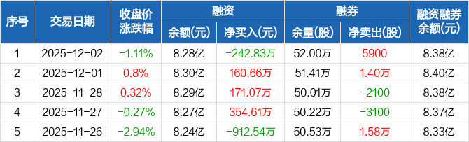 航发控制:融资净偿还242.83万元,融资余额8.28亿元(12-02)