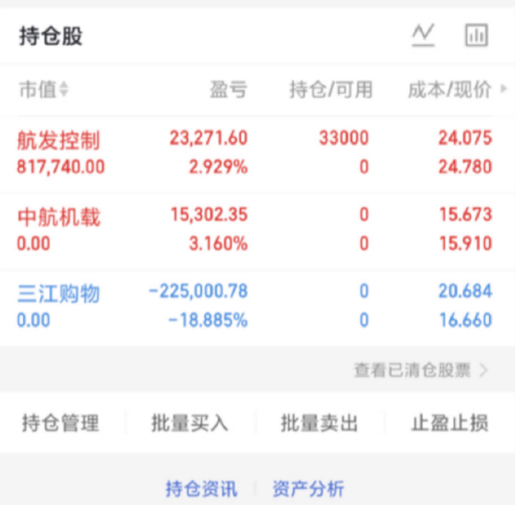 今日离场: $中航机载(SH600372)$ $三江购物(SH601116)$