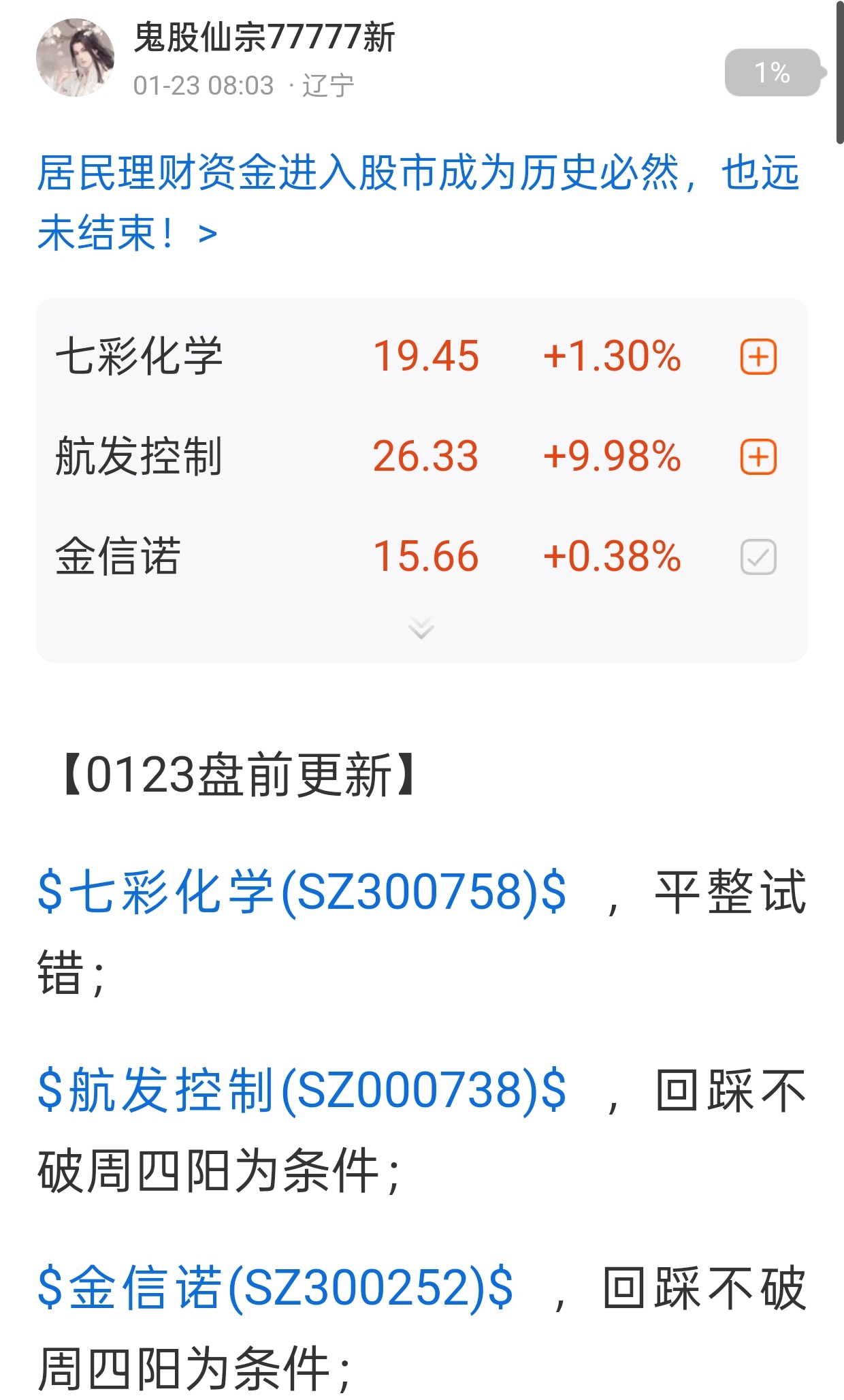 郑重声明:用户在财富号/股吧/博客等社区发表的所有信息(包括但不限于文字、视频、音频、数据及图表)仅代表个人观点,与本网站立场无关,不对您构成任何投资建议,据此操作风险自担。请勿相信代客理财、免费荐股和炒股培训等宣传内容,远离非法证券活动。请勿添加发言用户的手机号码、公众号、微博、微信及QQ等信息,谨防上当受骗!